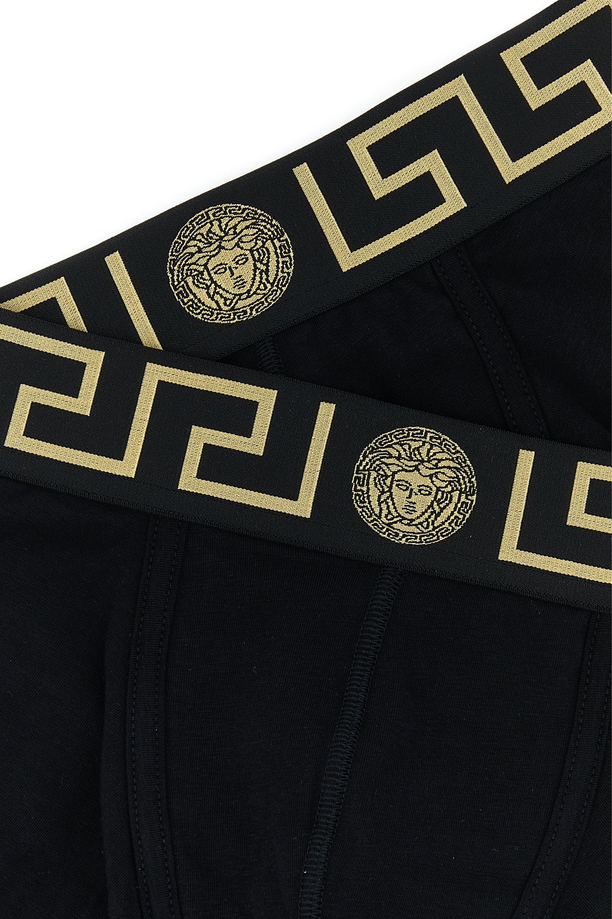 Two boxers set realized in stretch cotton characterized by iconic Medusa Head and Greek Key embroideries at the waist.