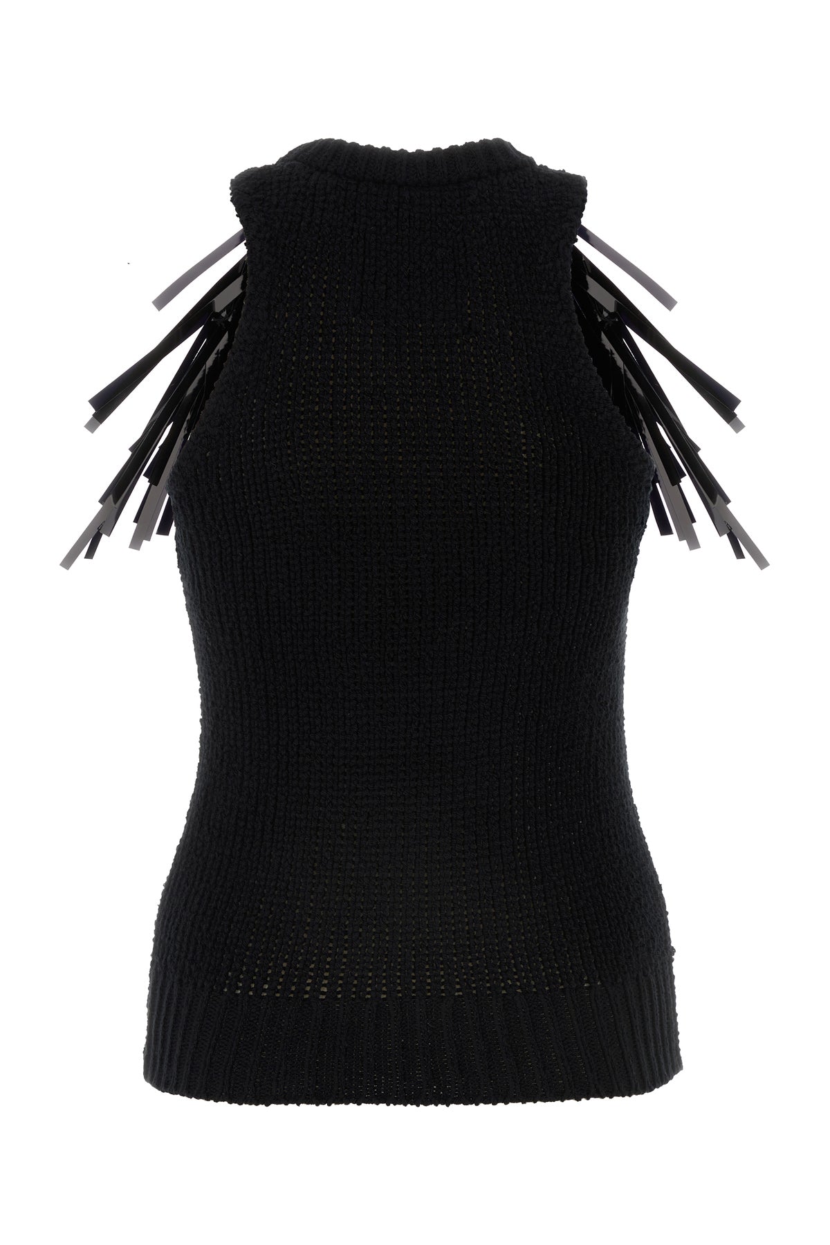 Top realized in stretch cotton enriched by tonal fringes at the front.