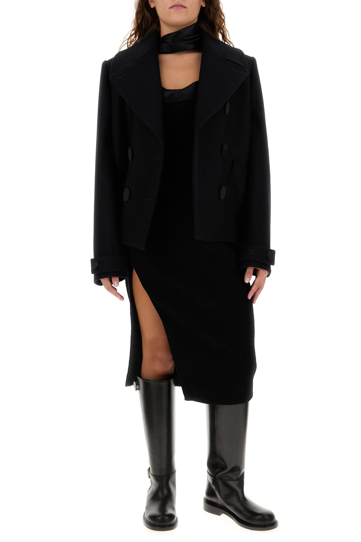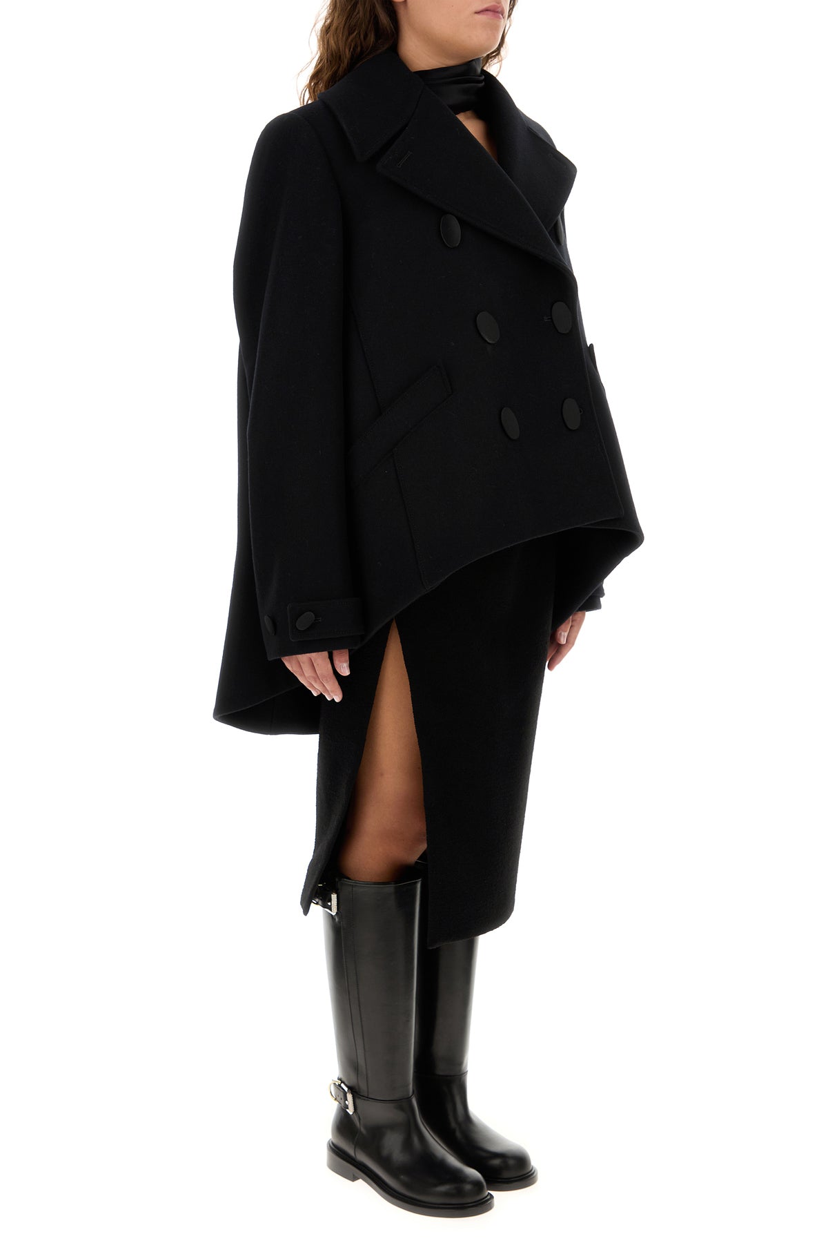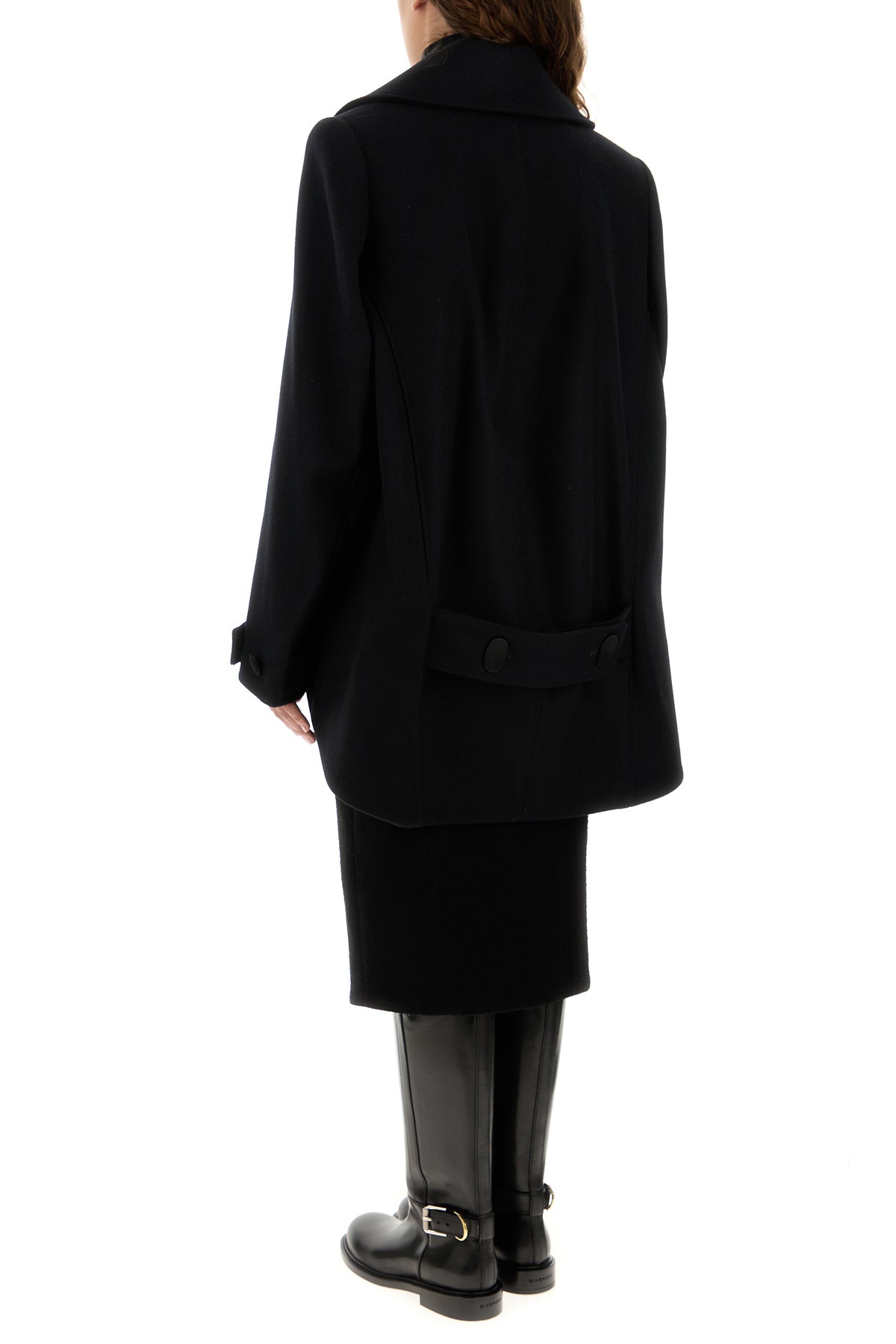 Short-cut oversize coat realized in pure virgin wool characterized by tonal logoed embroidery on the cuff.