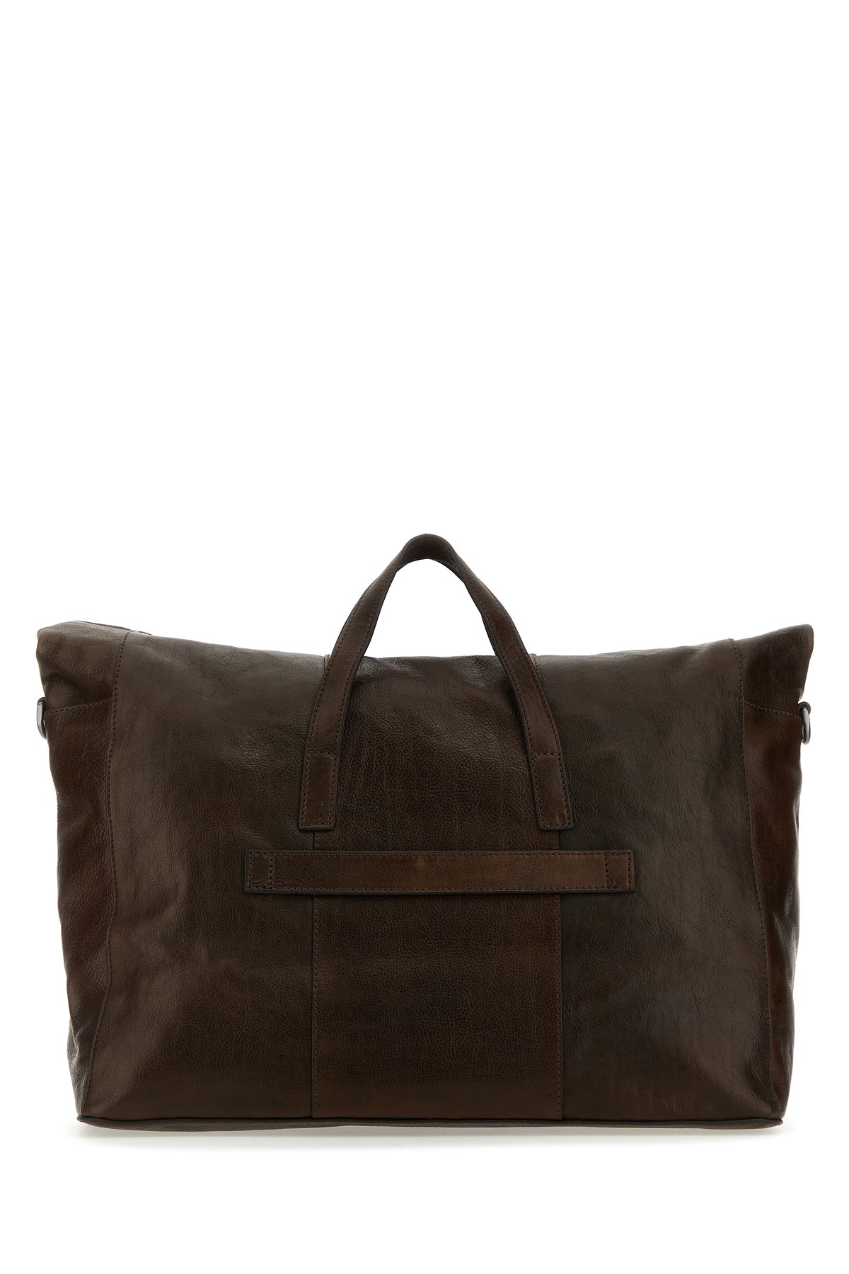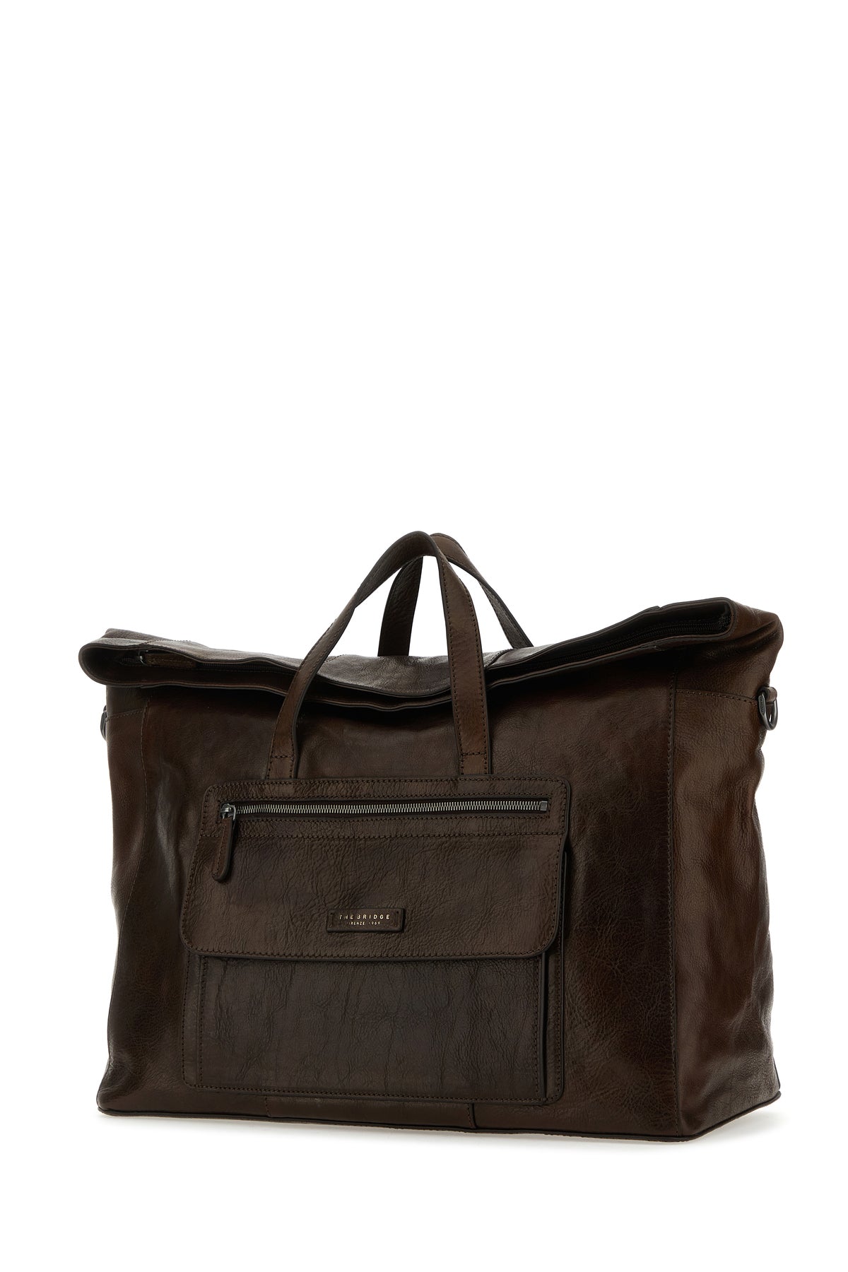 Travel bag realized in pebble bovine leather enriched by logoed patch at the front.