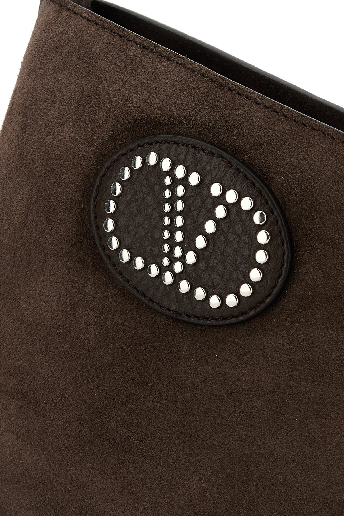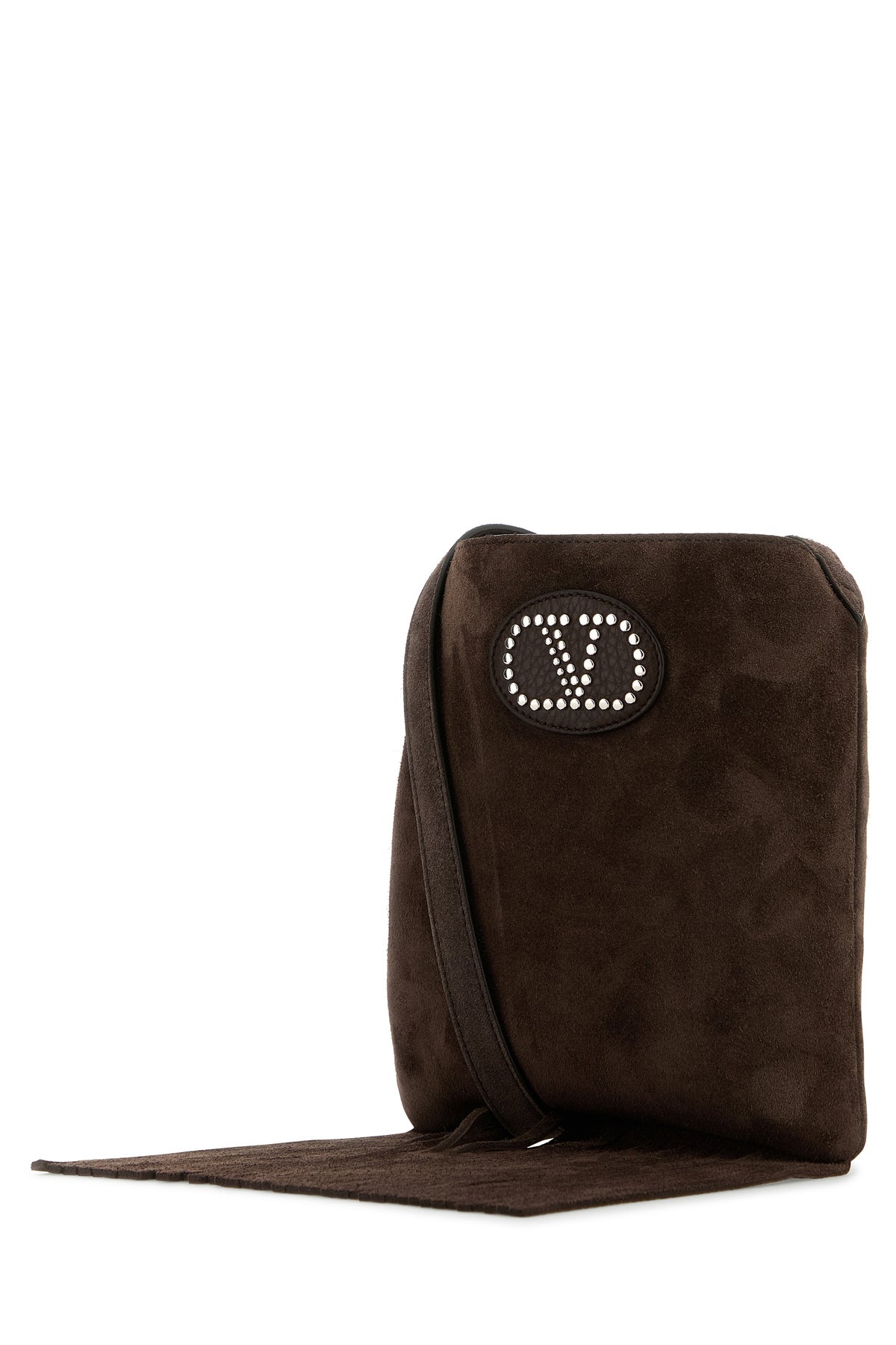 Crossbody bag realized in suede enriched by logoed patch at the front.