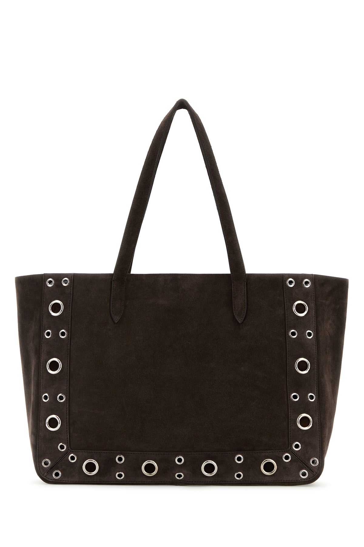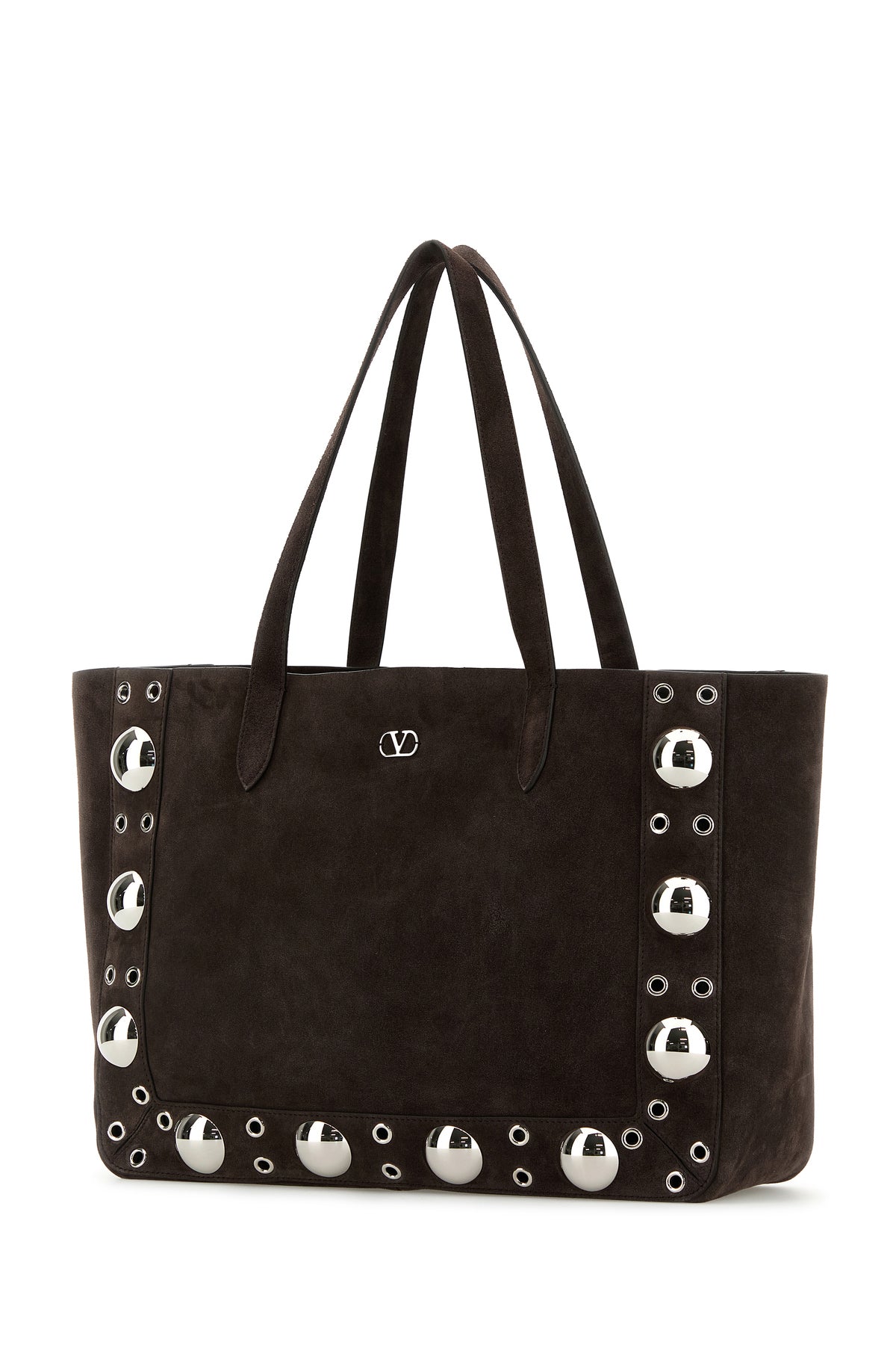 Shopping bag realized in suede enriched by VLogo Signature metal detail at the front and metal studs on the trimmings.