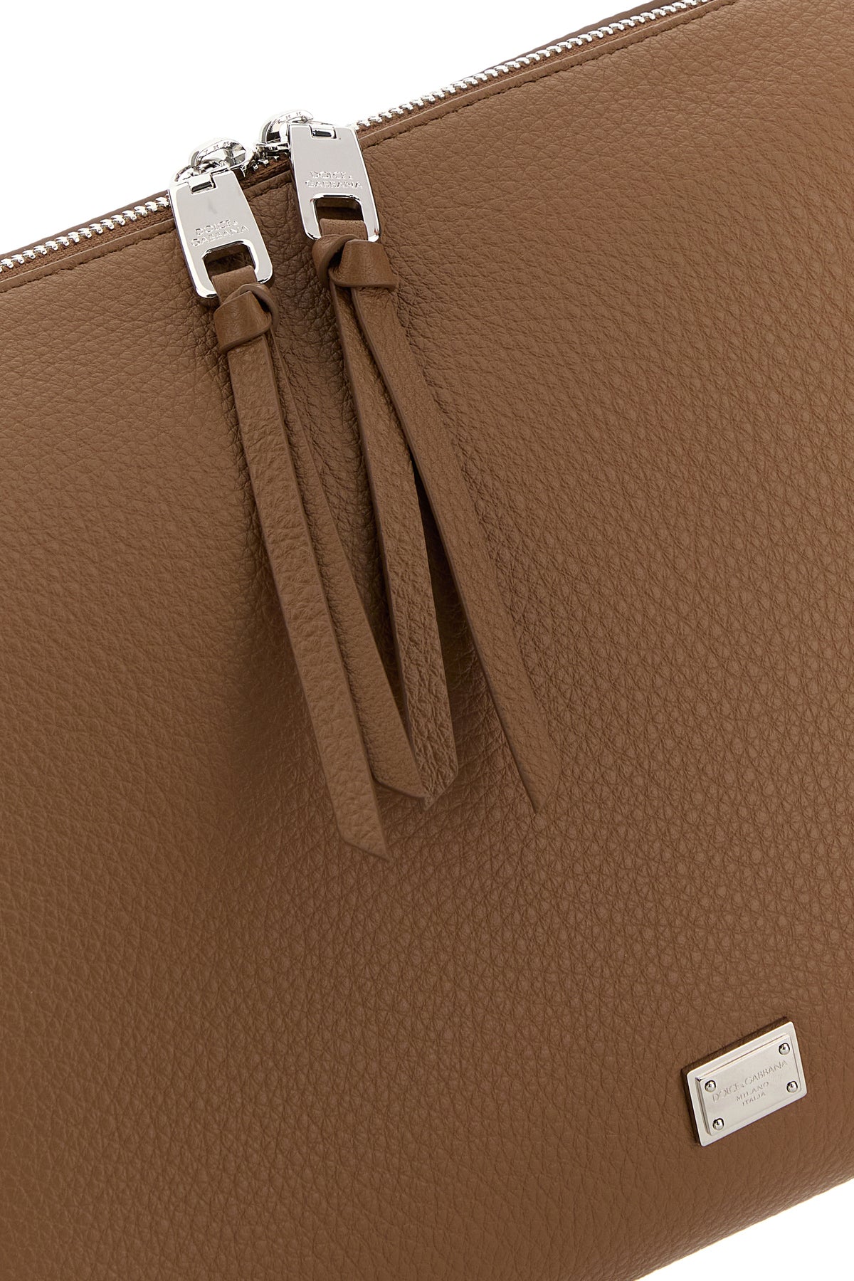 Handbag realized in pebble calf leather characterized by laminated printed logo at the front.