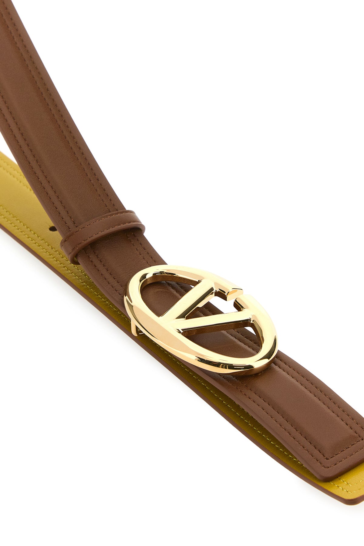 Reversible belt realized in calf leather characterized by metal VLogo buckle.