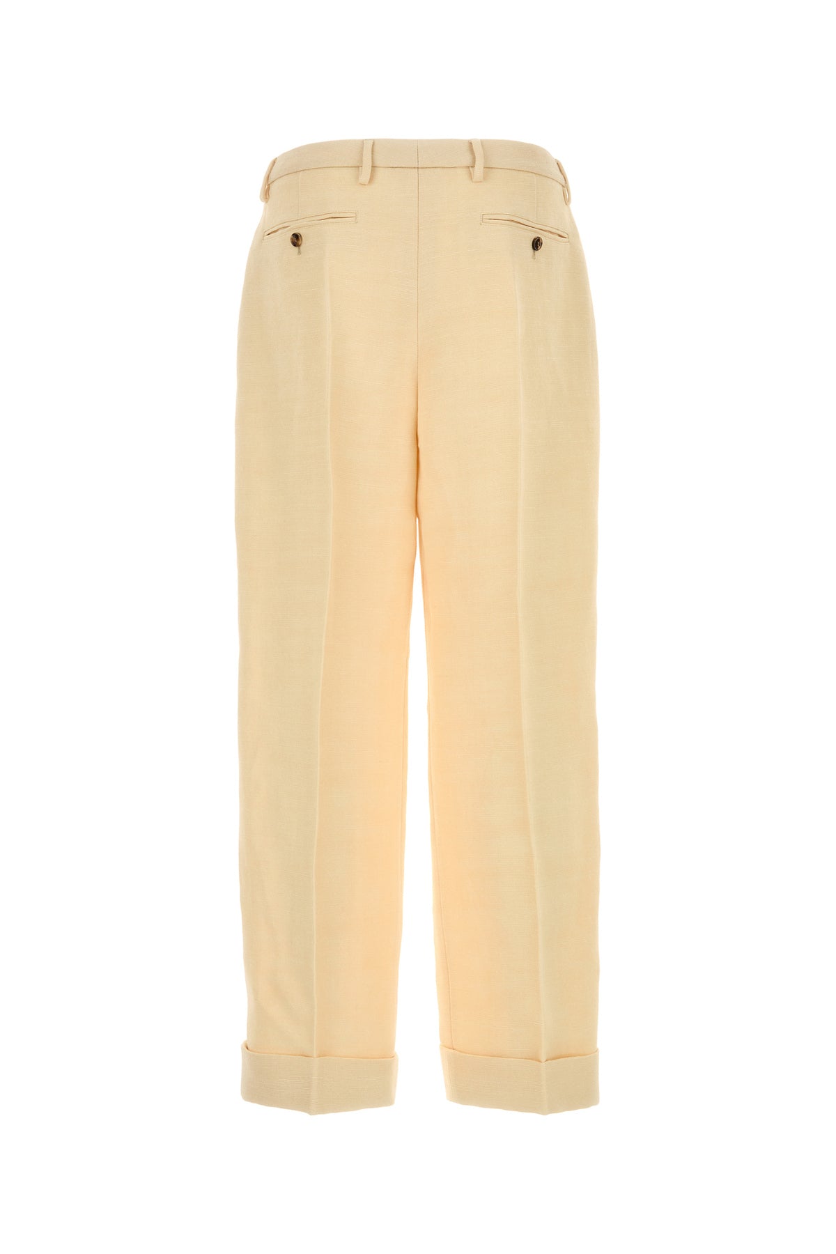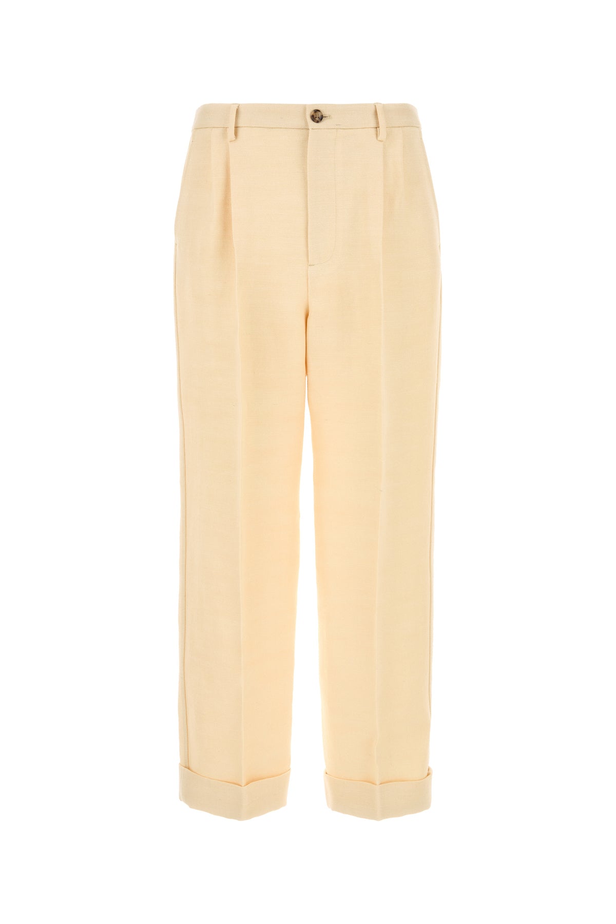Pant realized in jute characterized by inverted pleats.