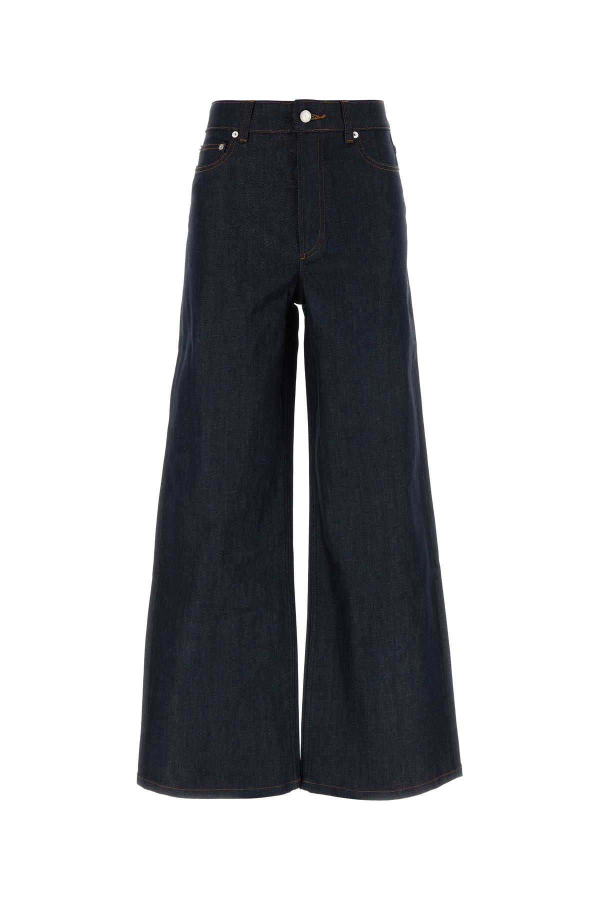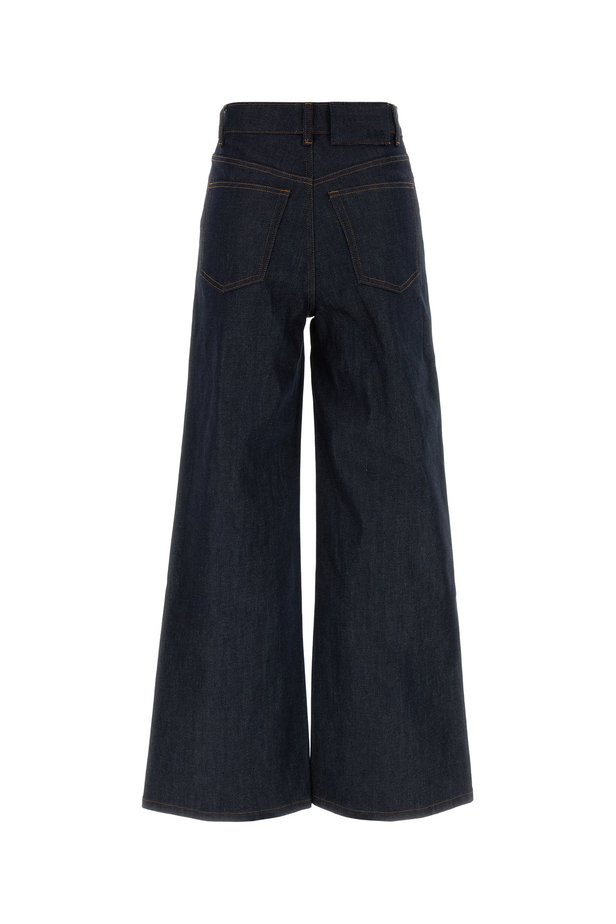 Wide-leg jeans realized in cotton blend denim enriched by tonal logoed label at the back.