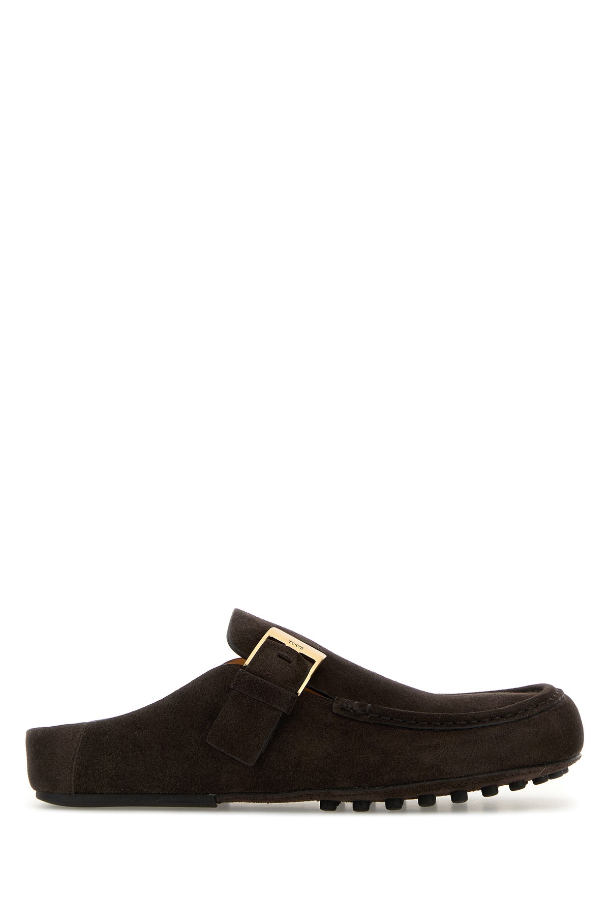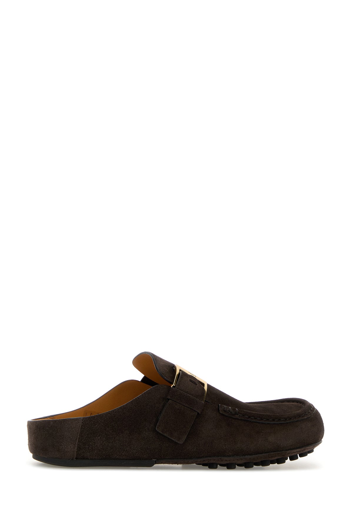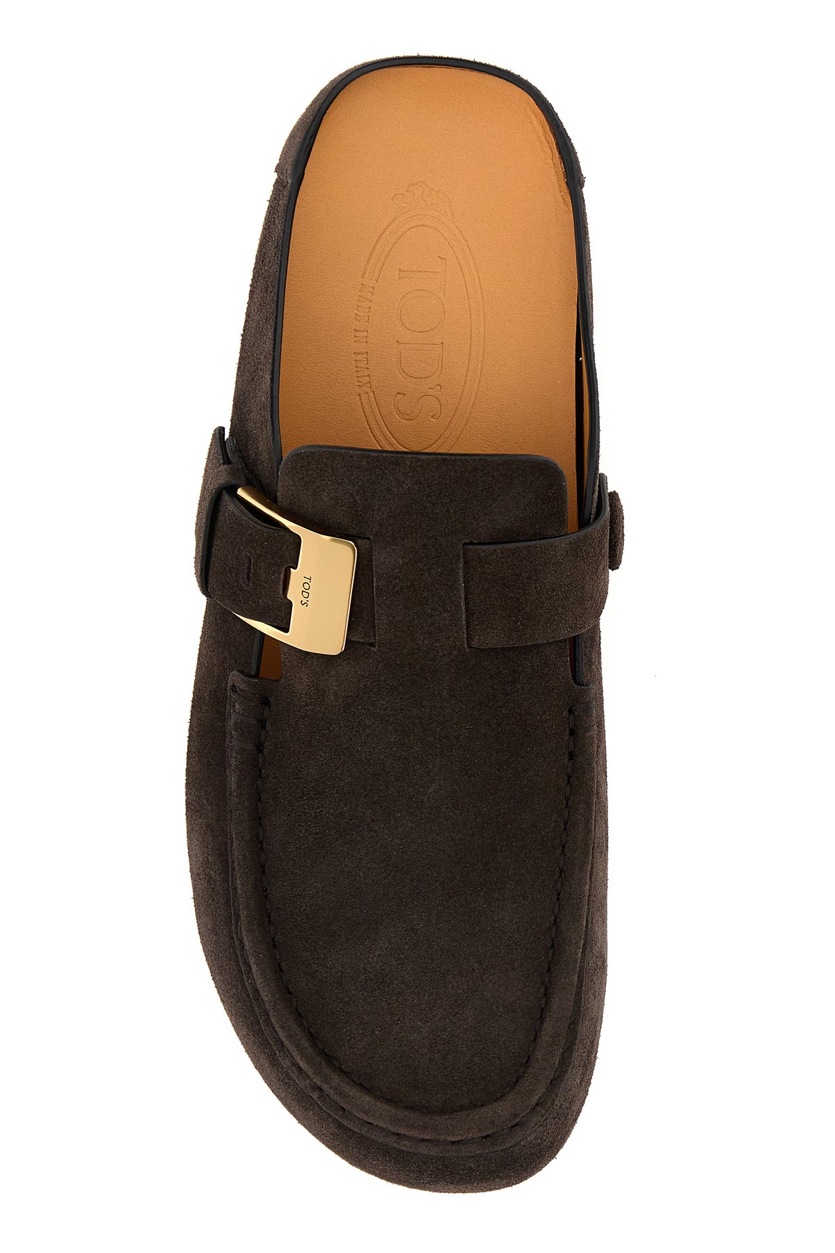 Slippers realized in suede characterized by embossed logo on the strap on the instep.