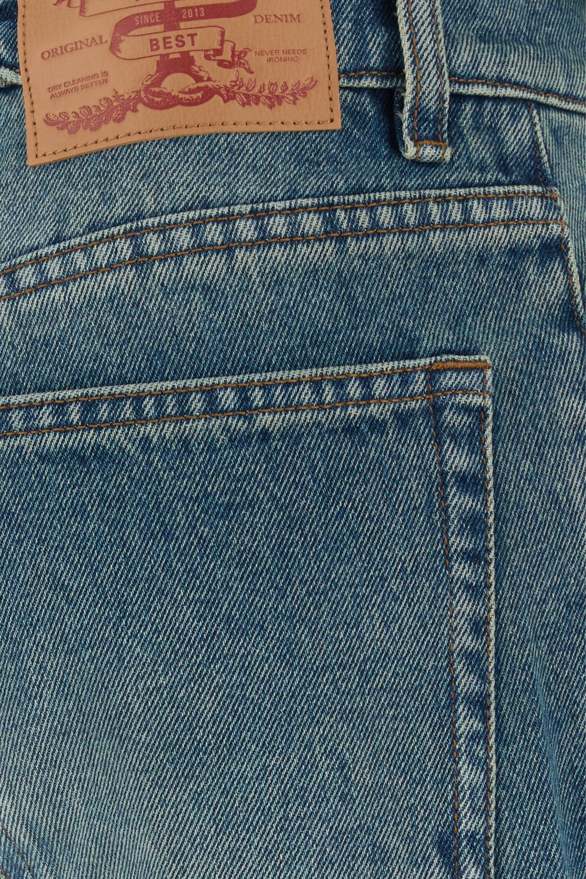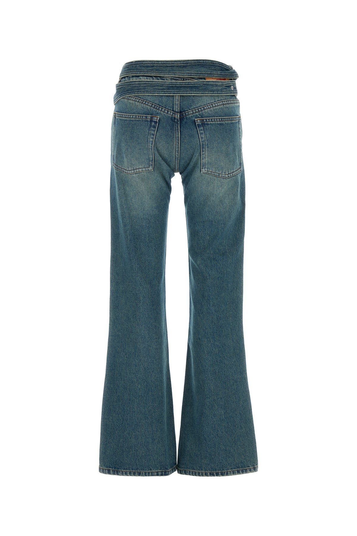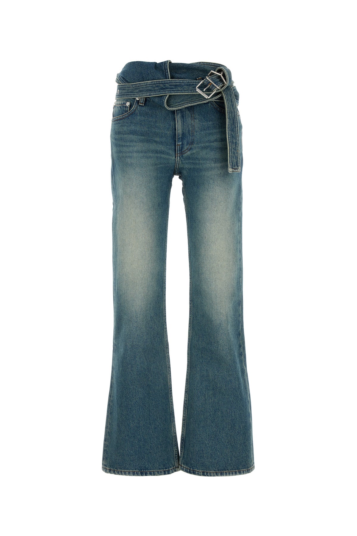 Jeans realized in stonewashed pure cotton denim enriched by detachable belt to tie at the waist.