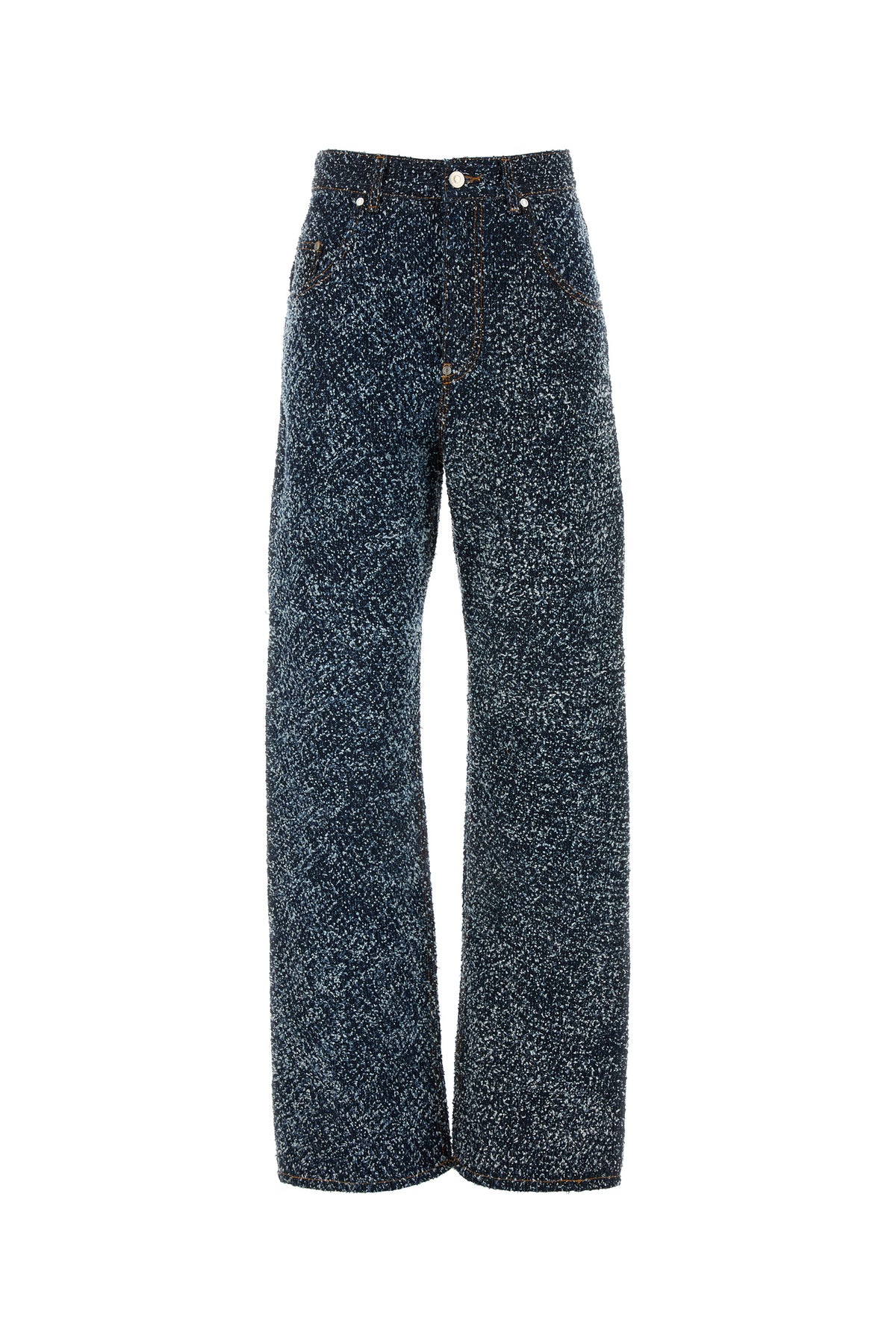 Straight-leg jeans realized in pure cotton bouclé denim enriched by logoed label at the back.
