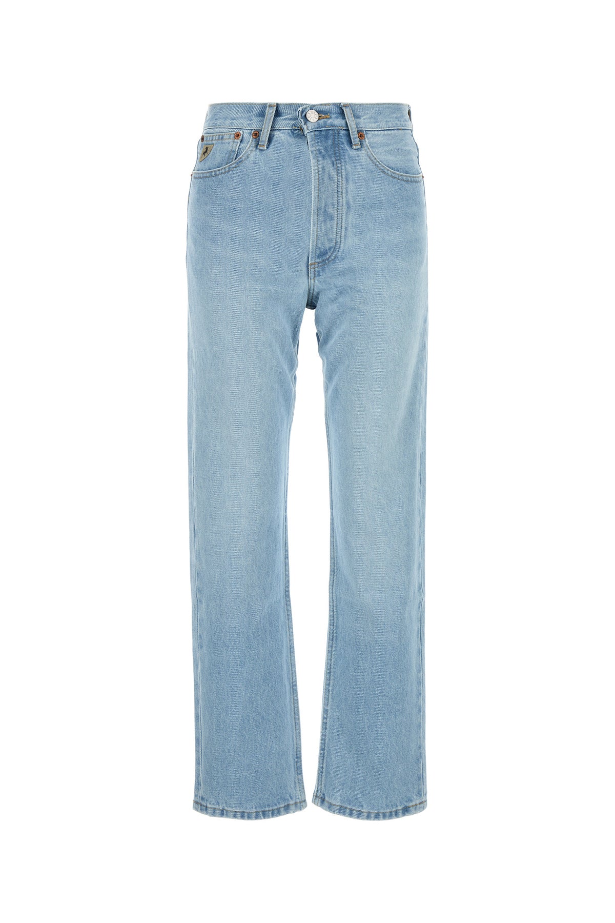 Jeans realized in pure cotton denim enriched by logoed label at the front and at the back.