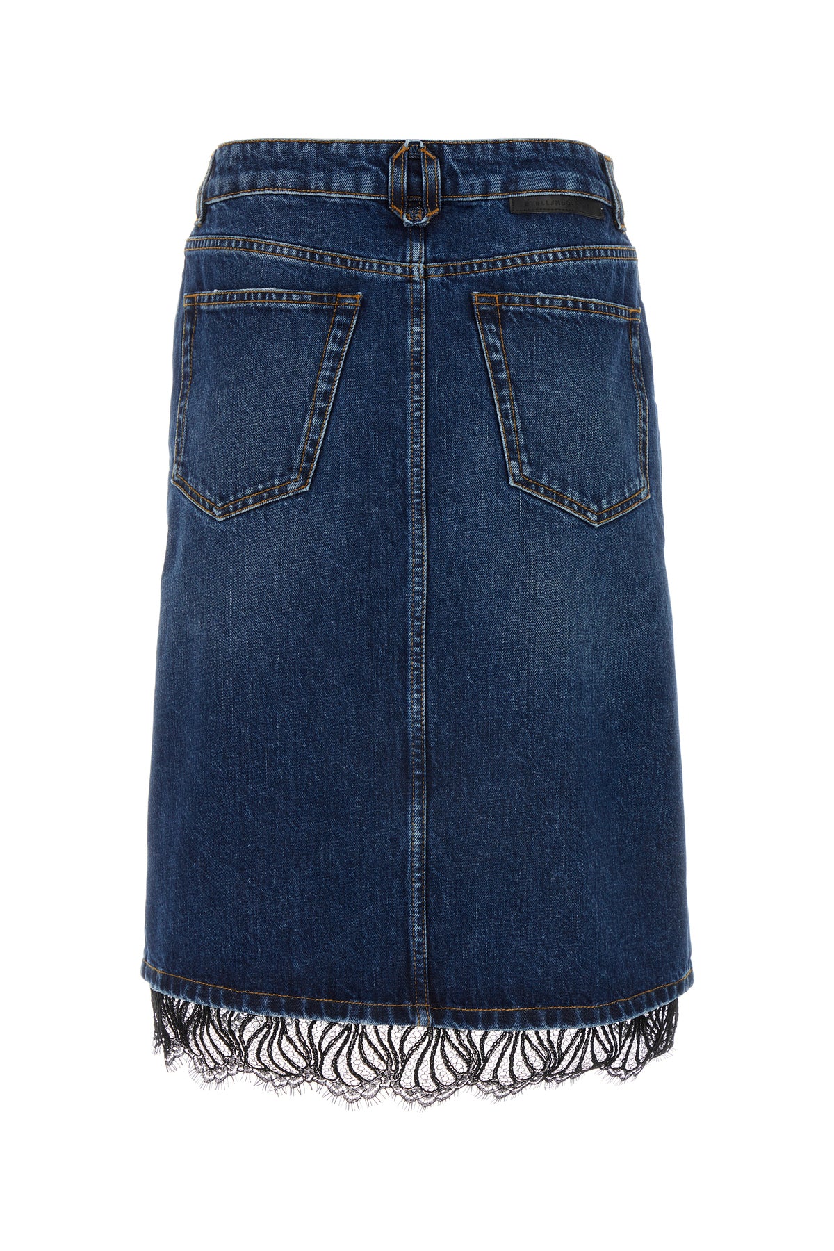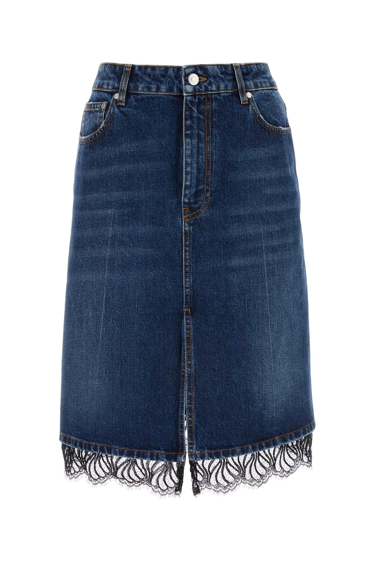 Midi-length skirt realized in stonewashed pure cotton denim enriched by lace insert on the hemline and logoed label at the back.