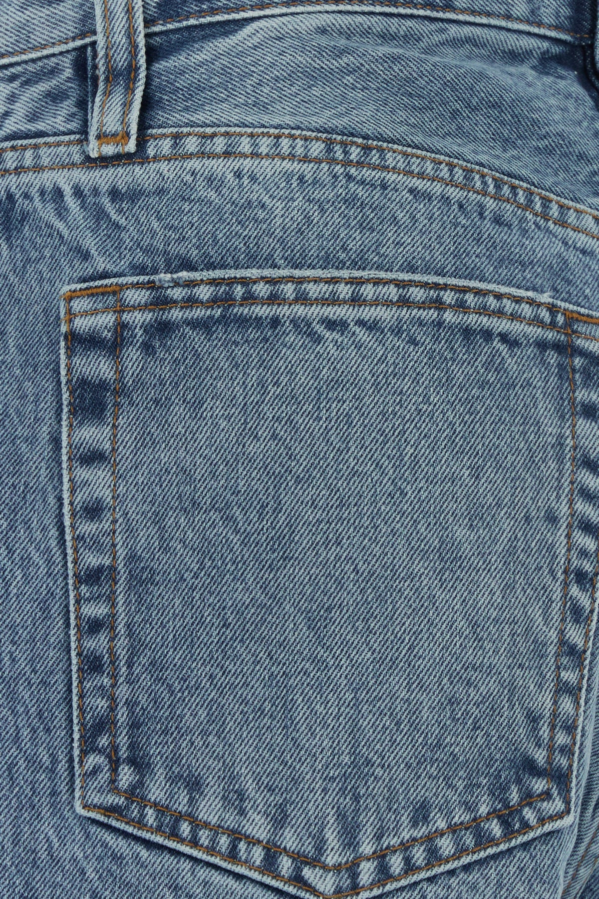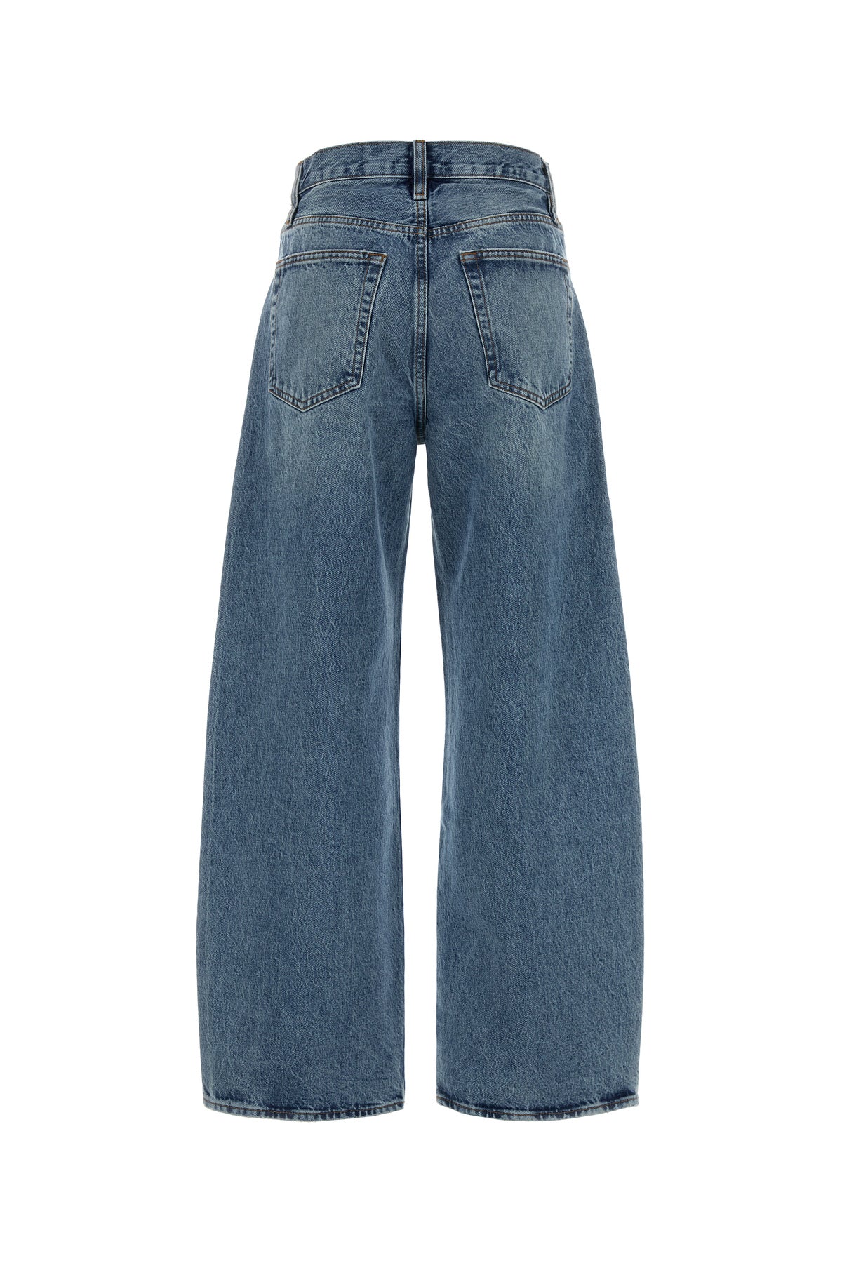 Wide-leg jeans realized in stonewashed pure cotton denim characterized by contrasting stitchings.