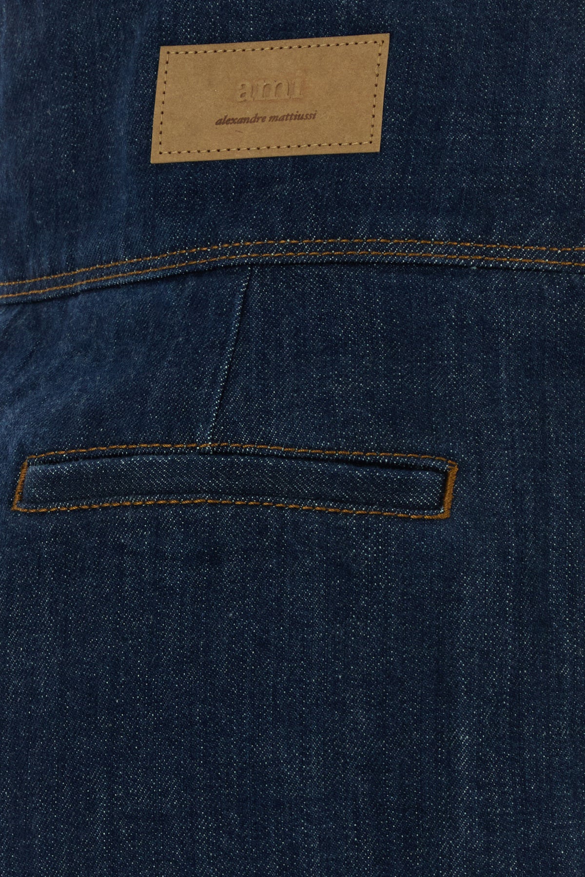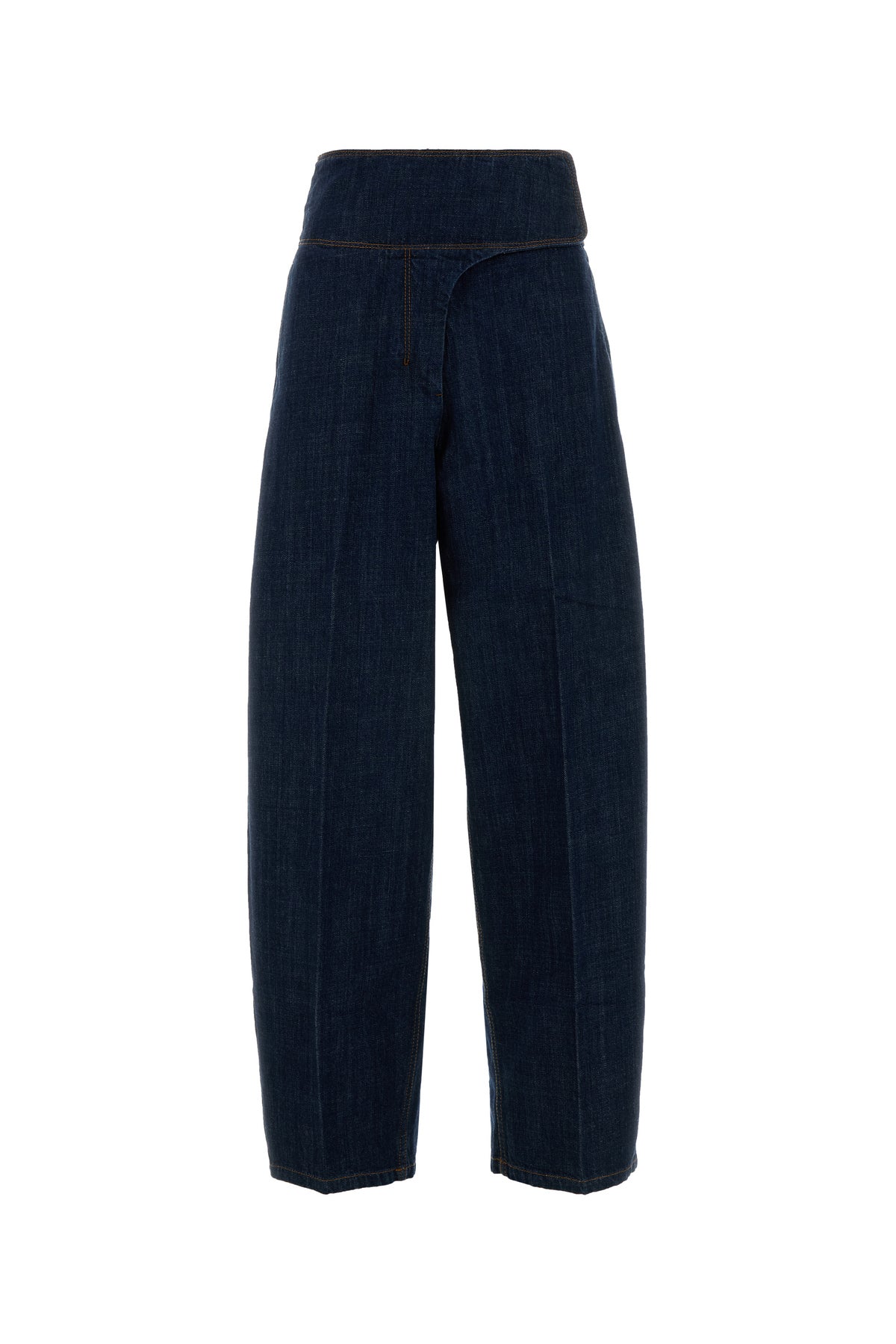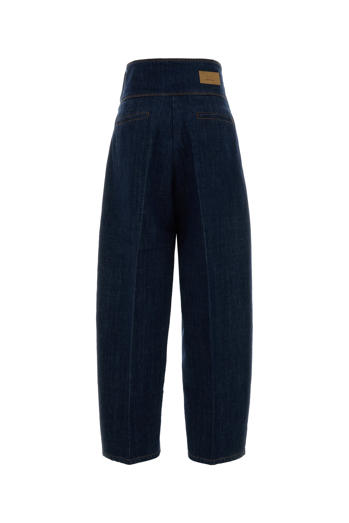 Wide-leg jeans realized in pure cotton denim enriched by logoed label at the back.