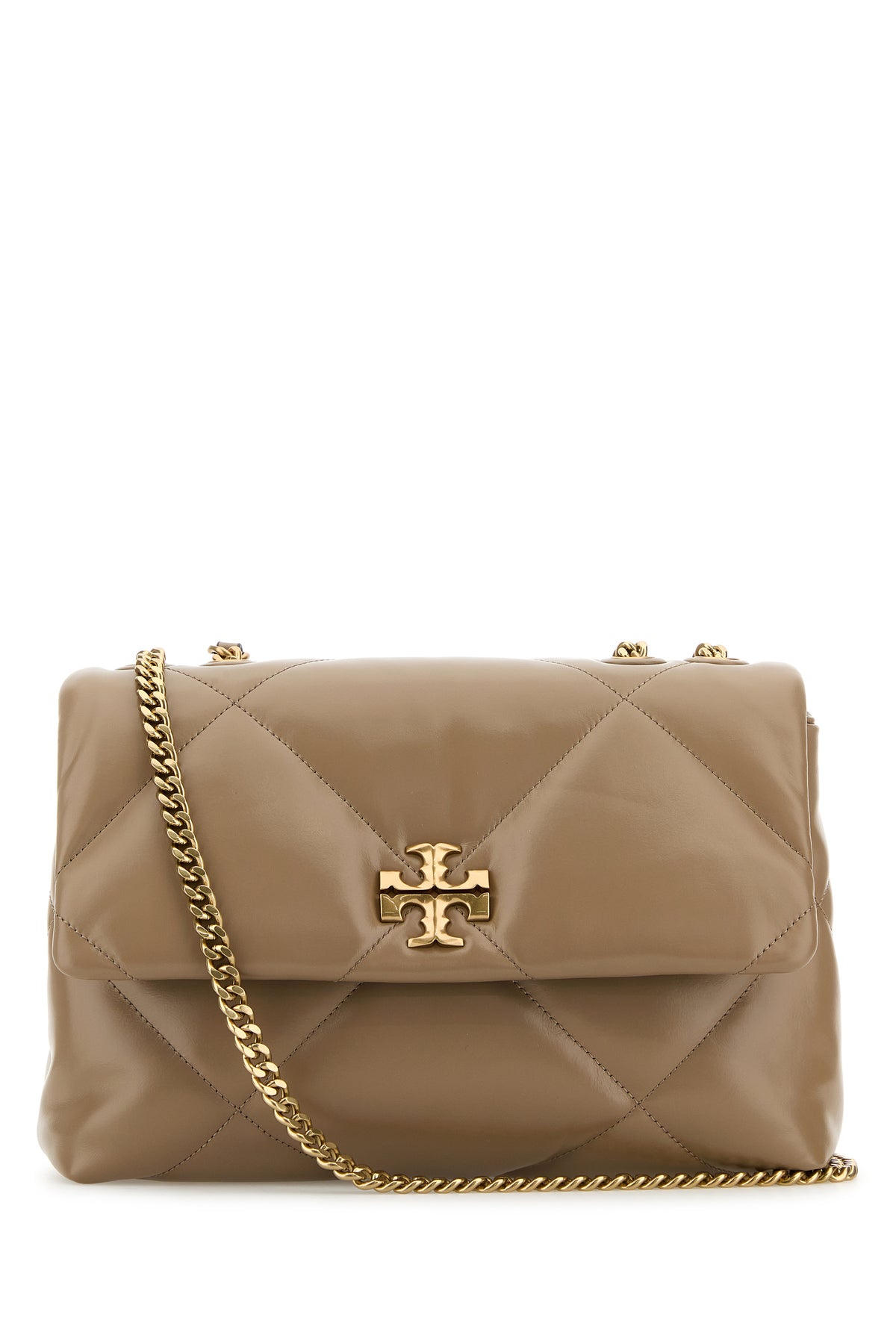 - Metal chain shoulder strap with tonal leather shoulder pads that can be worn single or double