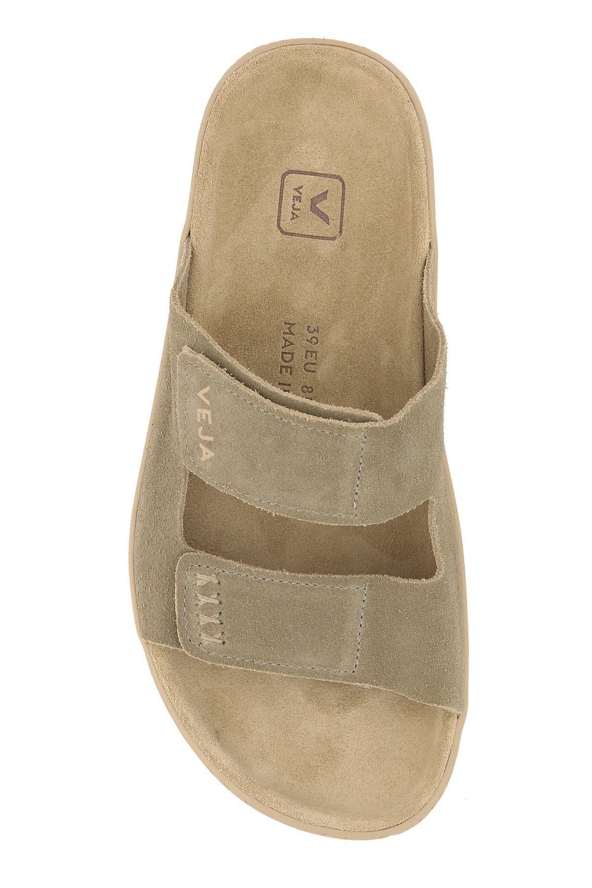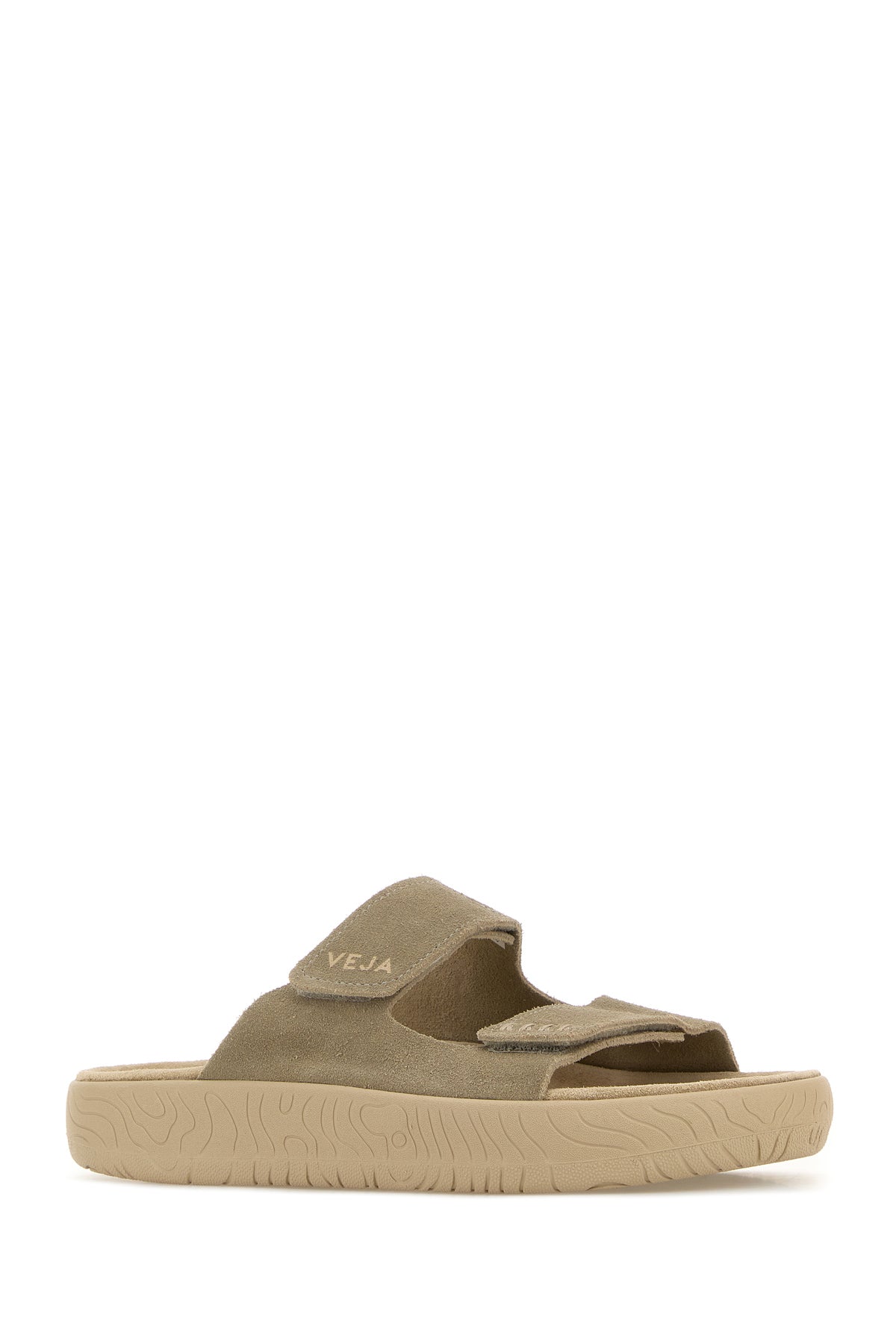 Slippers realized in suede characterized by printed logo on the adjustable straps on the instep.