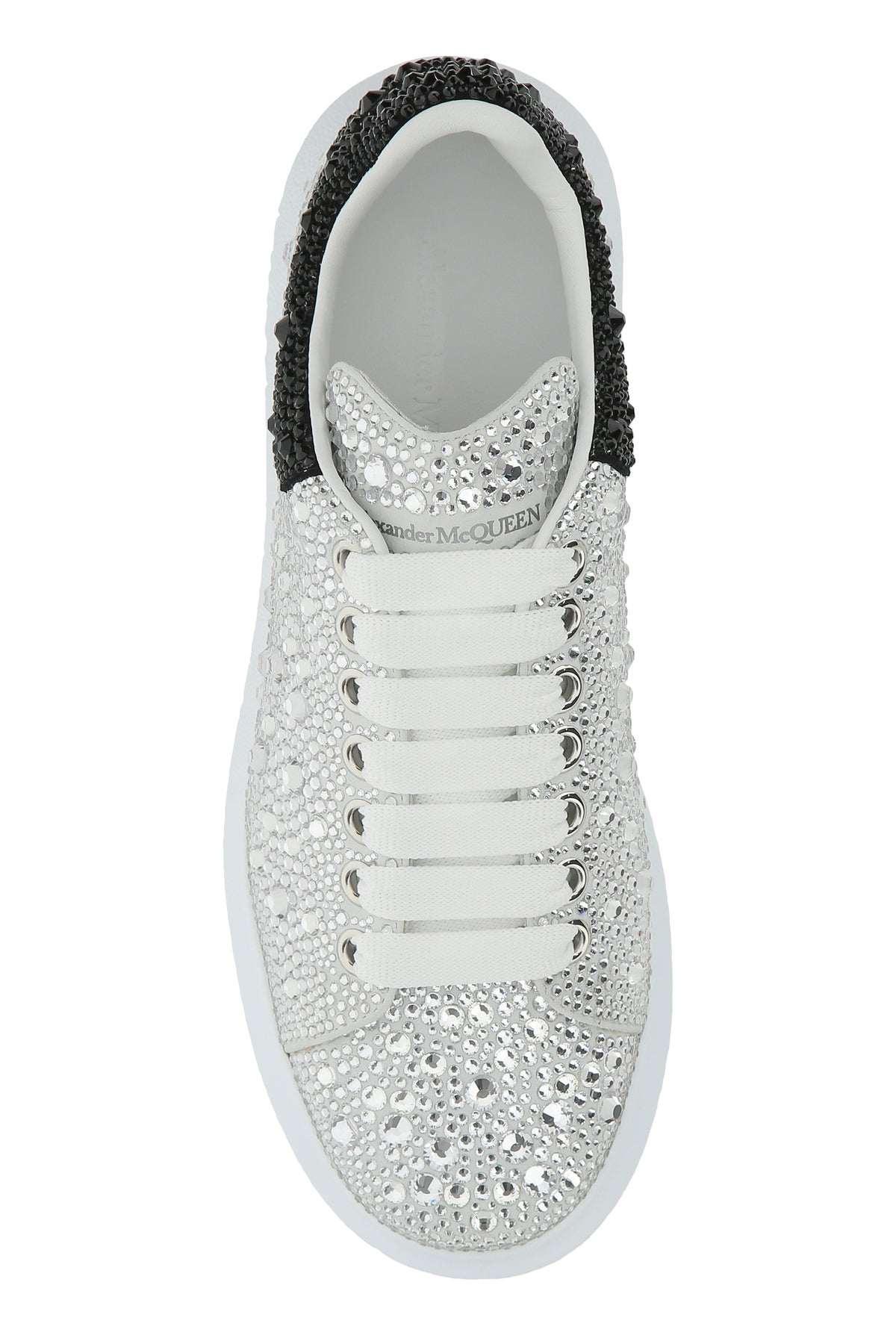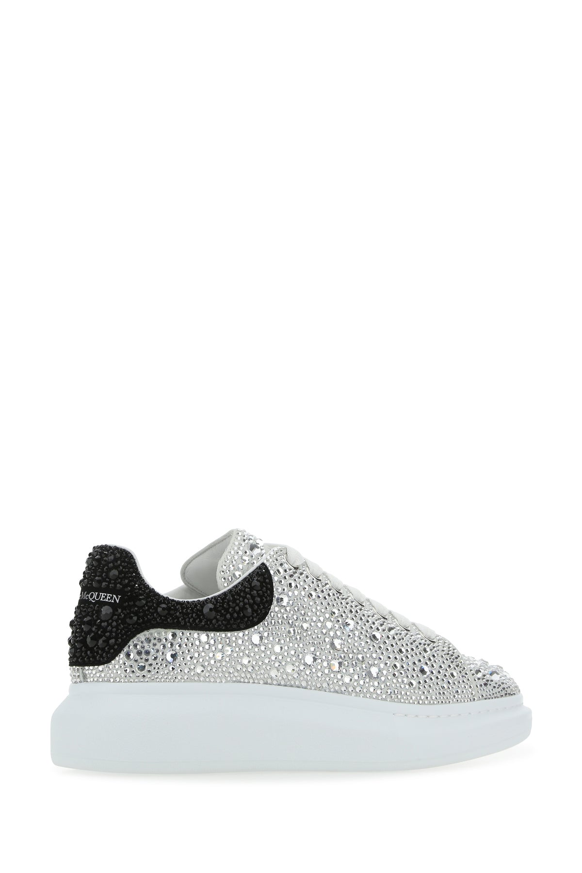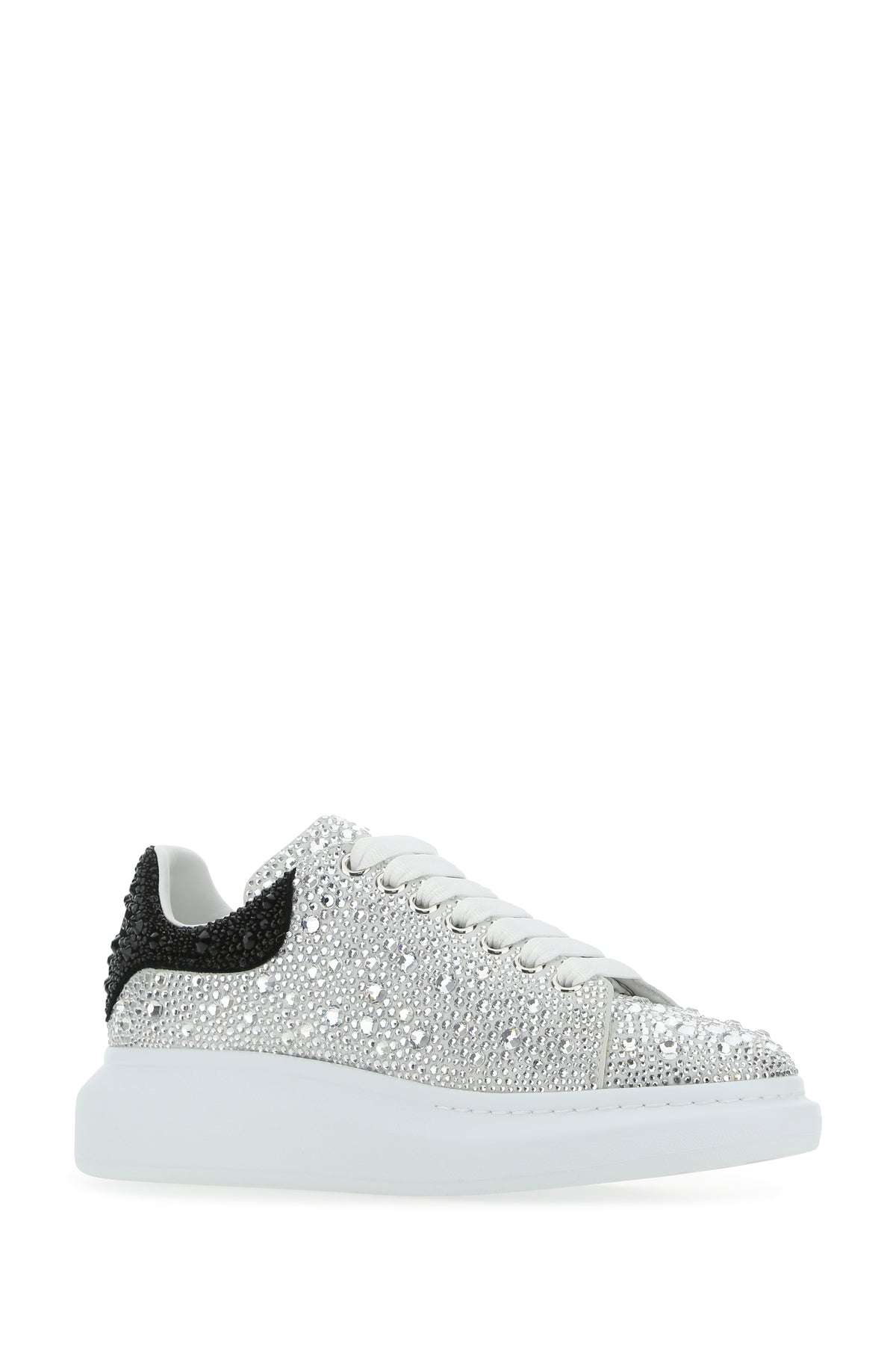 Sneakers realized in leather entirely covered by rhinestones characterized by printed logo on the tongue and on the heel.