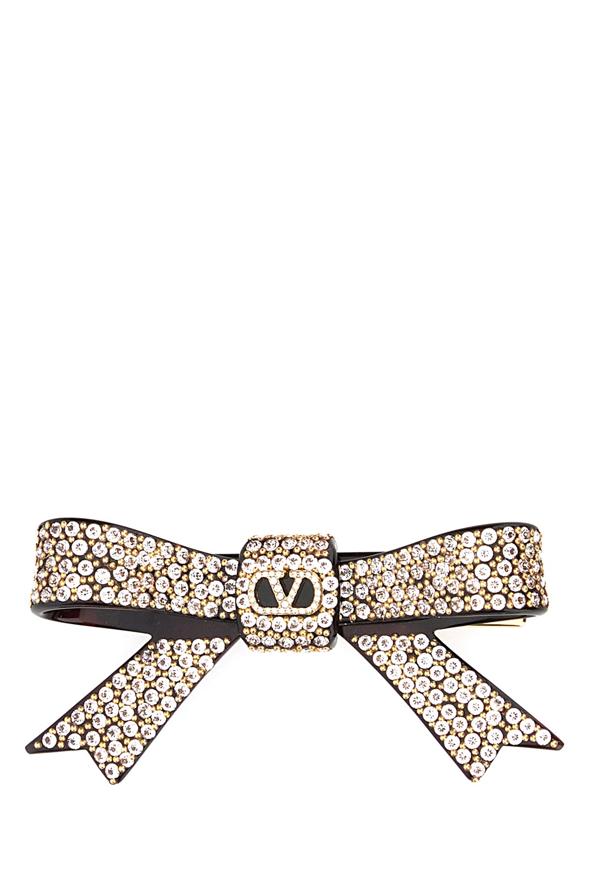 Hair clip realized in PVC entirely covered by rhinestones enriched by VLogo Signature metal.