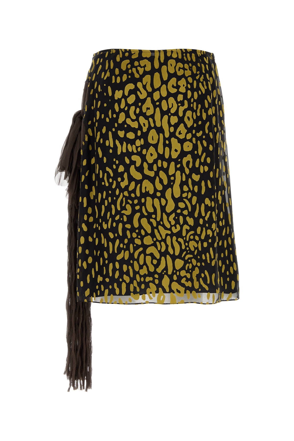 Skirt realized in silk blend enriched by animal patches on the entire surface and fringed insert on the side.