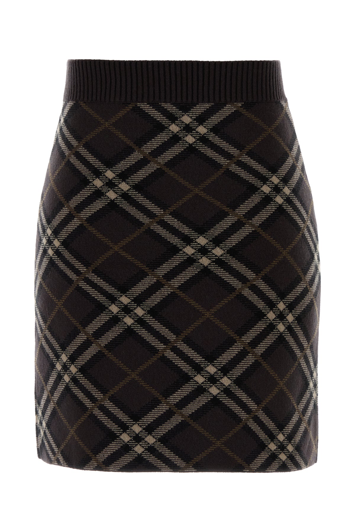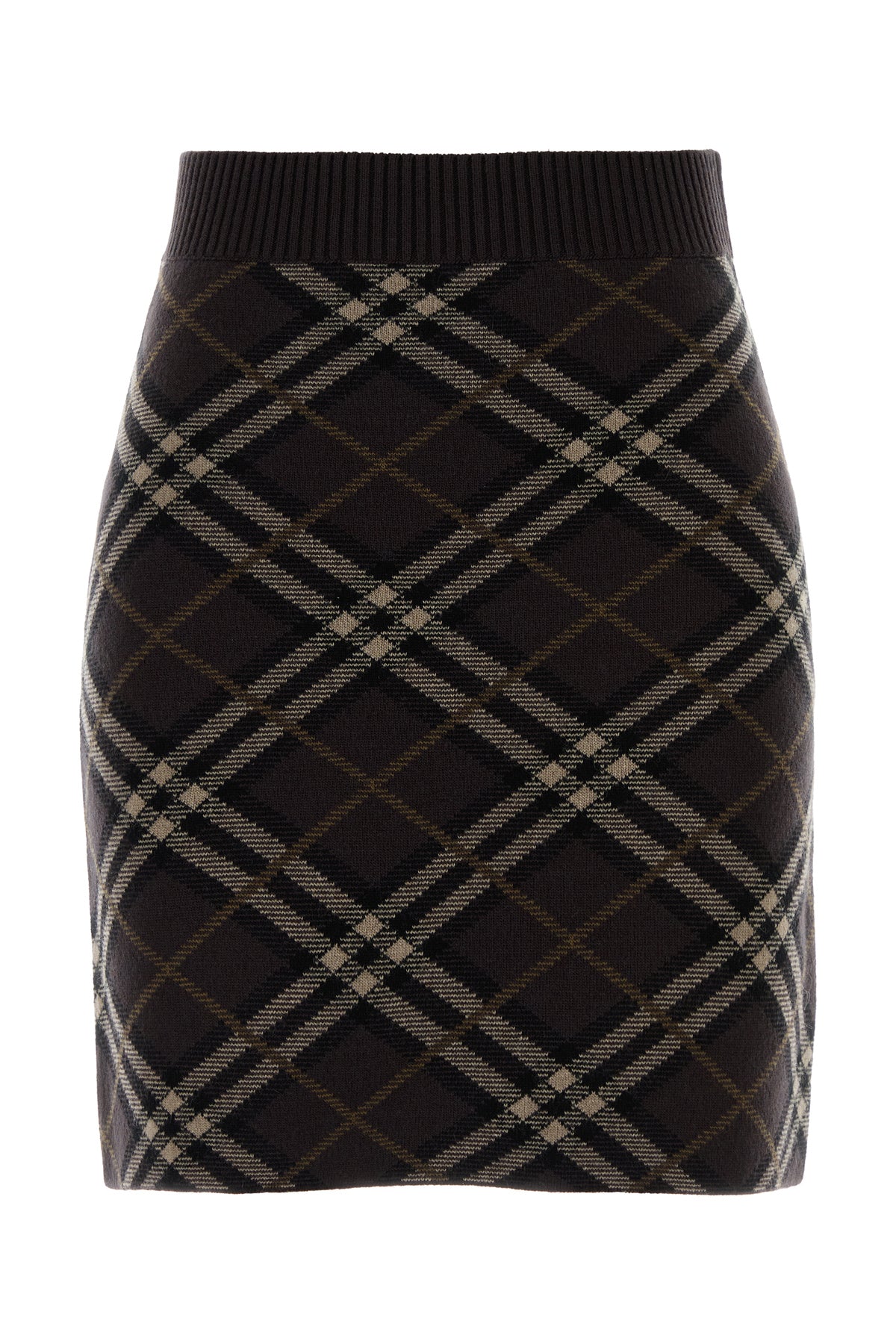 Mini skirt realized in stretch wool blend characterized by Burberry Check embroidery on the entire surface.