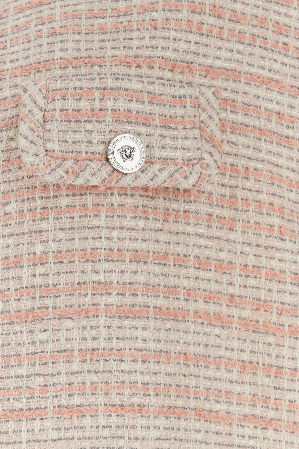 Oversize vest realized in cotton blend tweed with lurex threads enriched by metal Medusa Hardware details at the front.