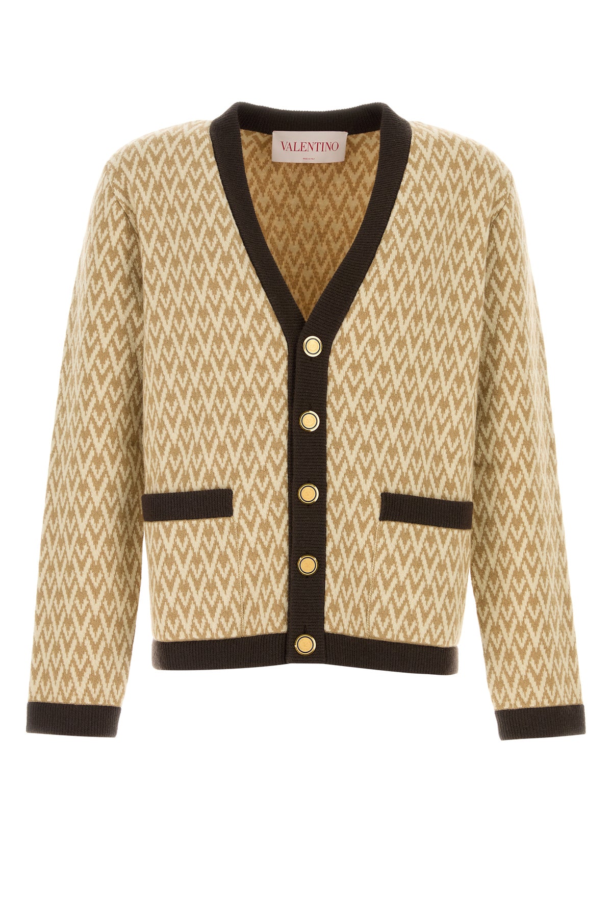 Cardigan realized in pure virgin wool characterized by Toute la V embroidery on the entire surface.