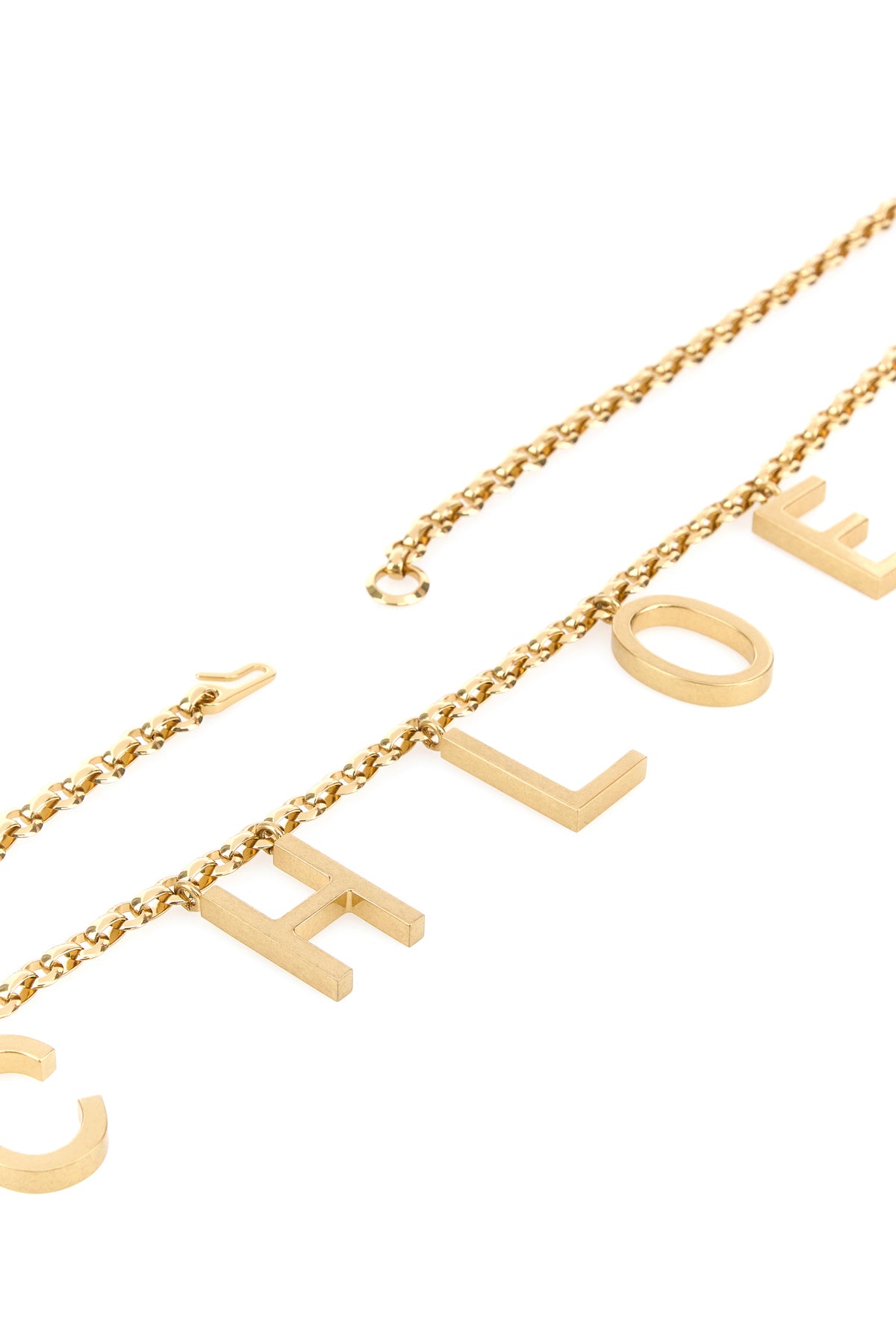 Belt realized in gold-tone pleated metal chain enriched by metal lettering logo.