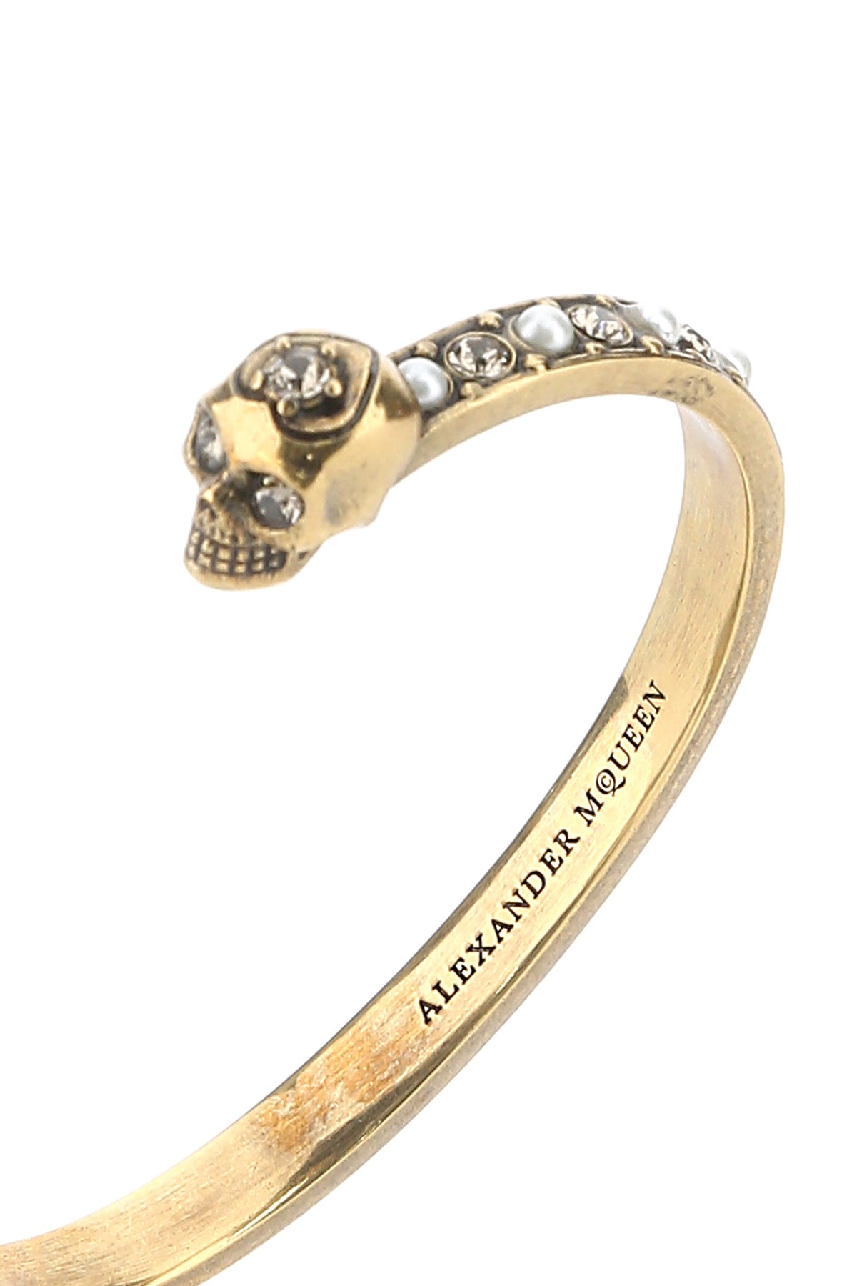 Rigid bracelet realized in metal enriched by Skull detail on the end and jewel embellishments.