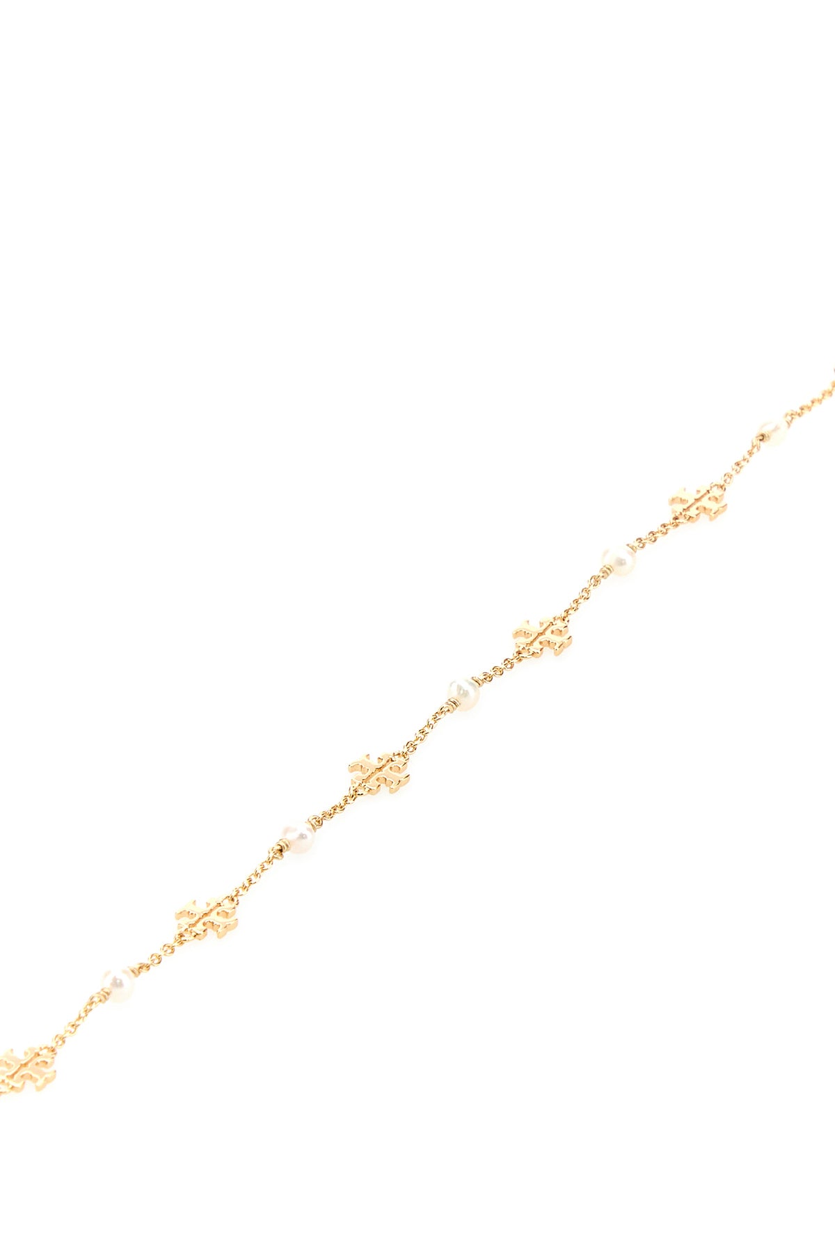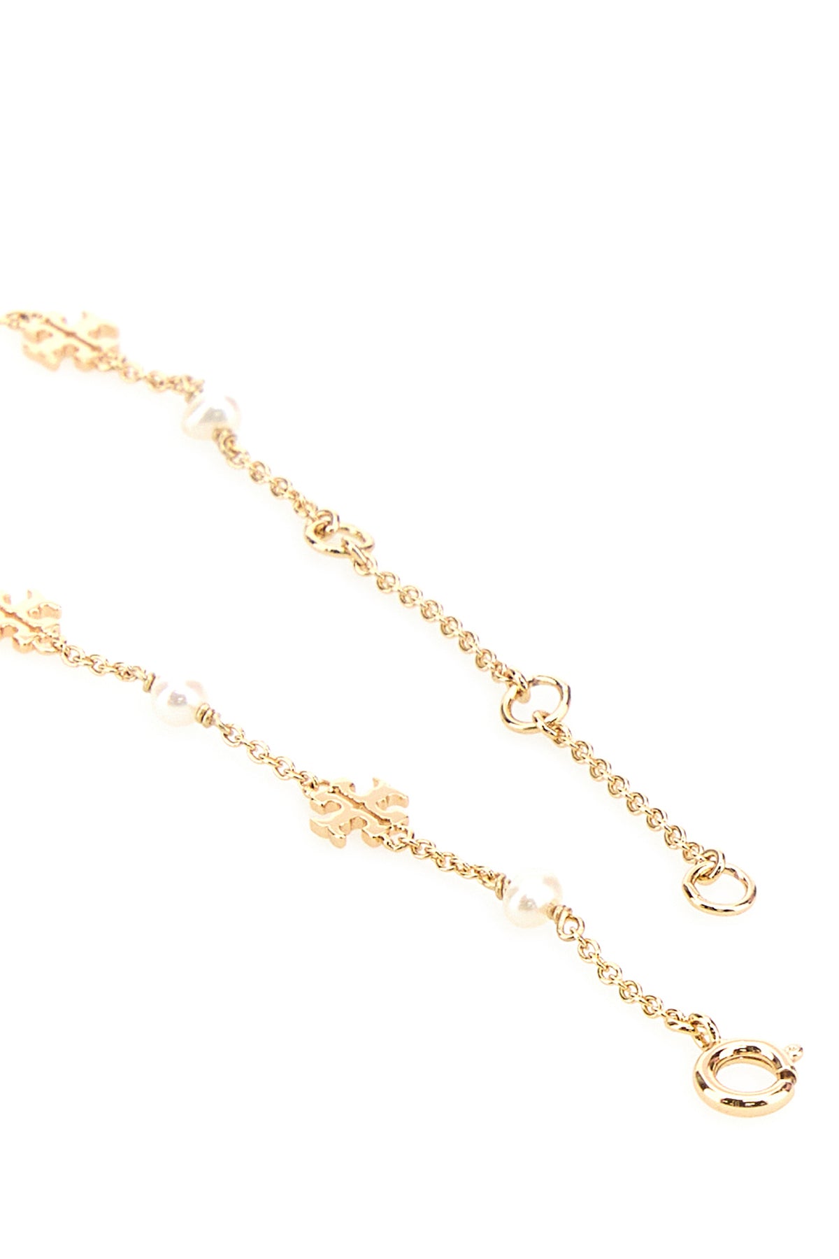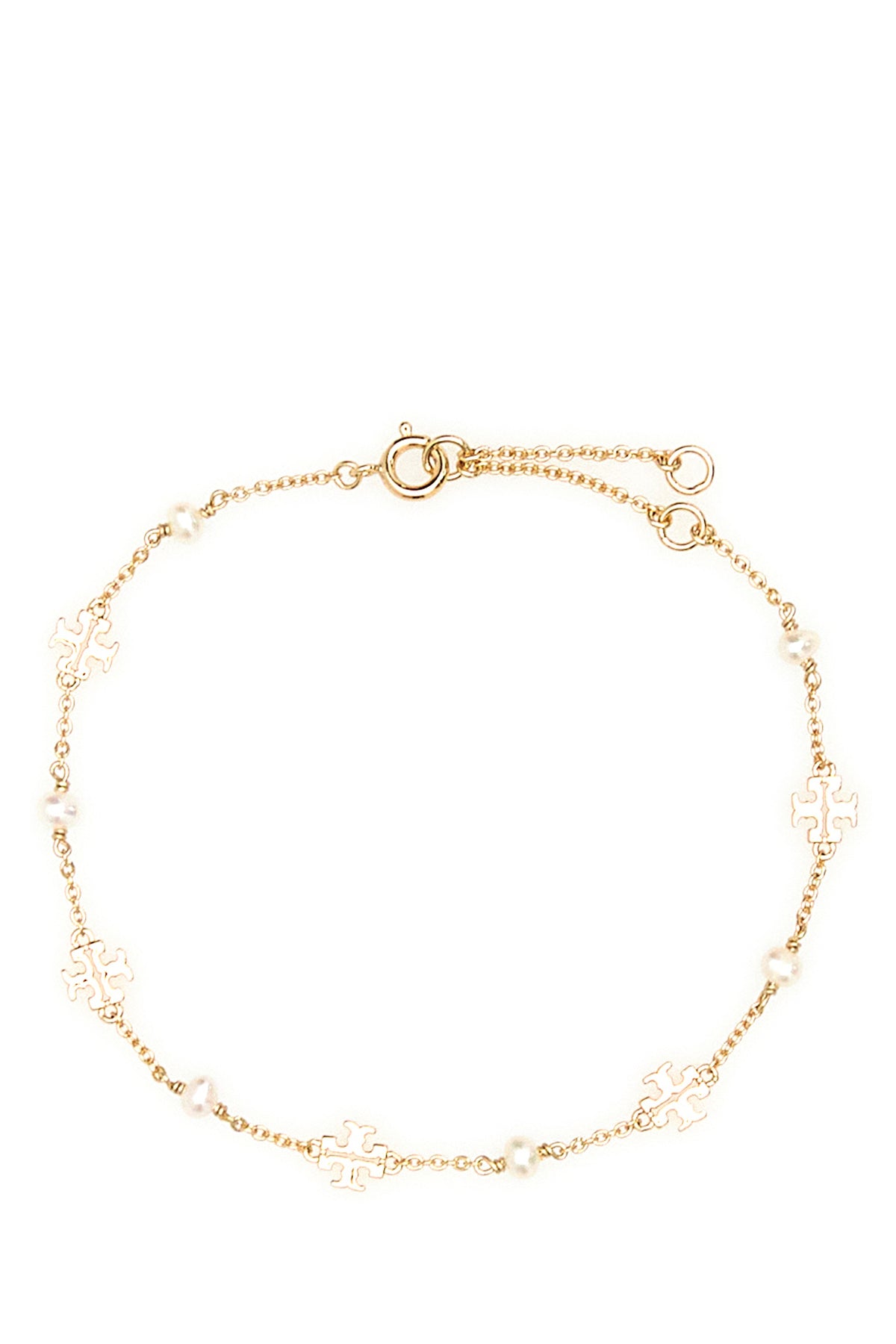 Bracelet realized in silver-tone plated metal enriched by metal logoed details and pearls.