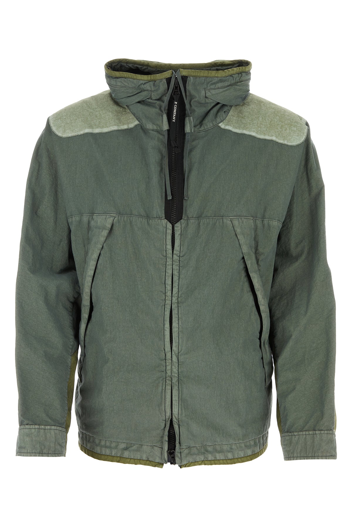 Jacket realized in cotton blend with tonal fabric inserts on the sleeves and at the top.