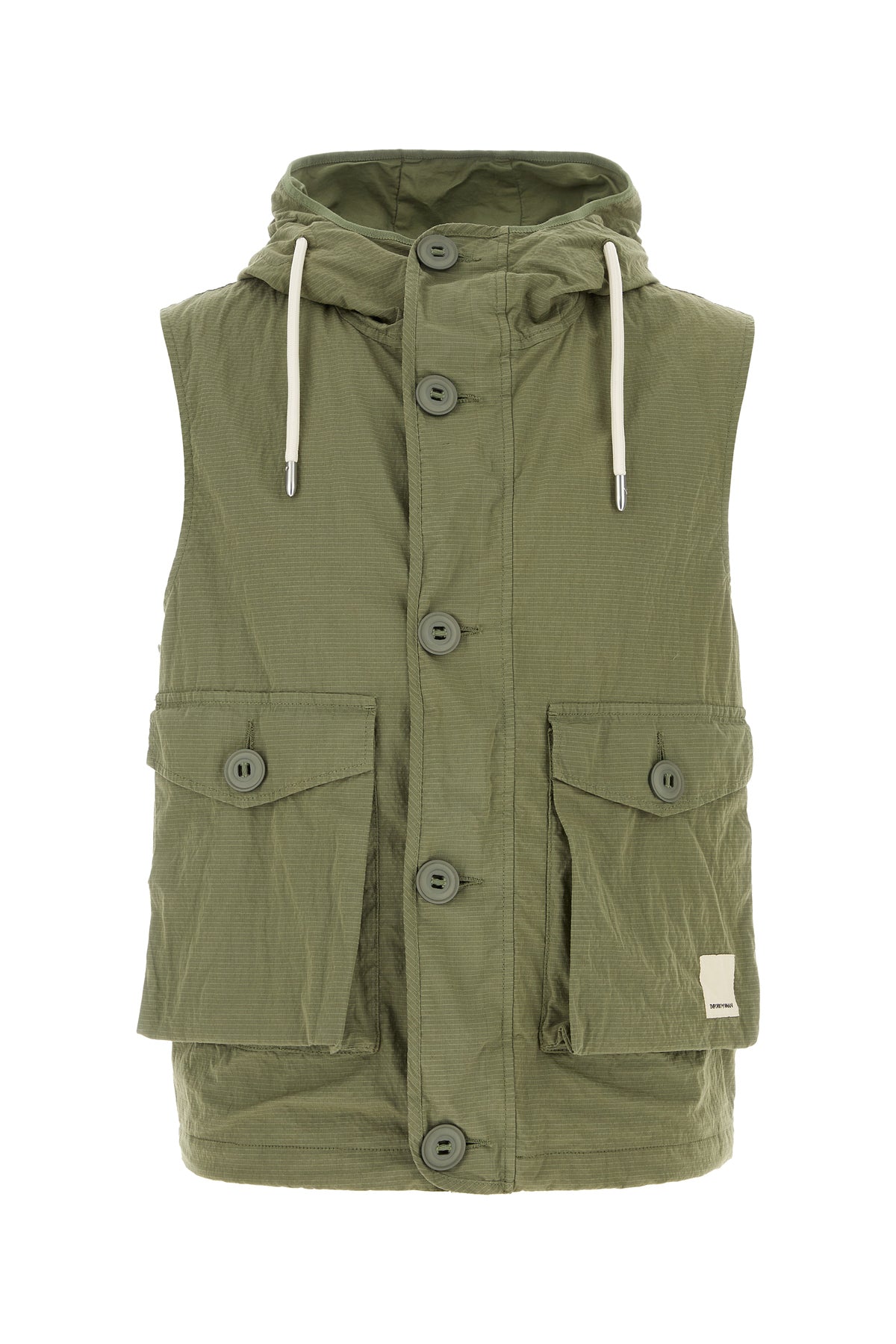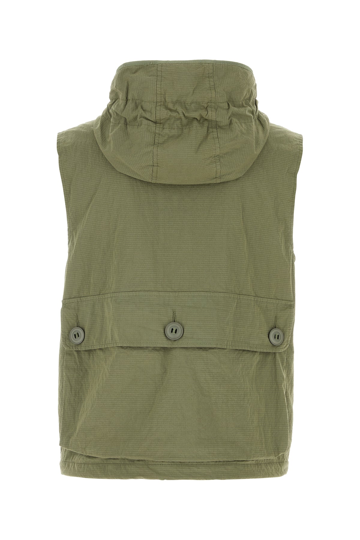 Vest realized in cotton blend enriched by contrasting logoed label at the front.