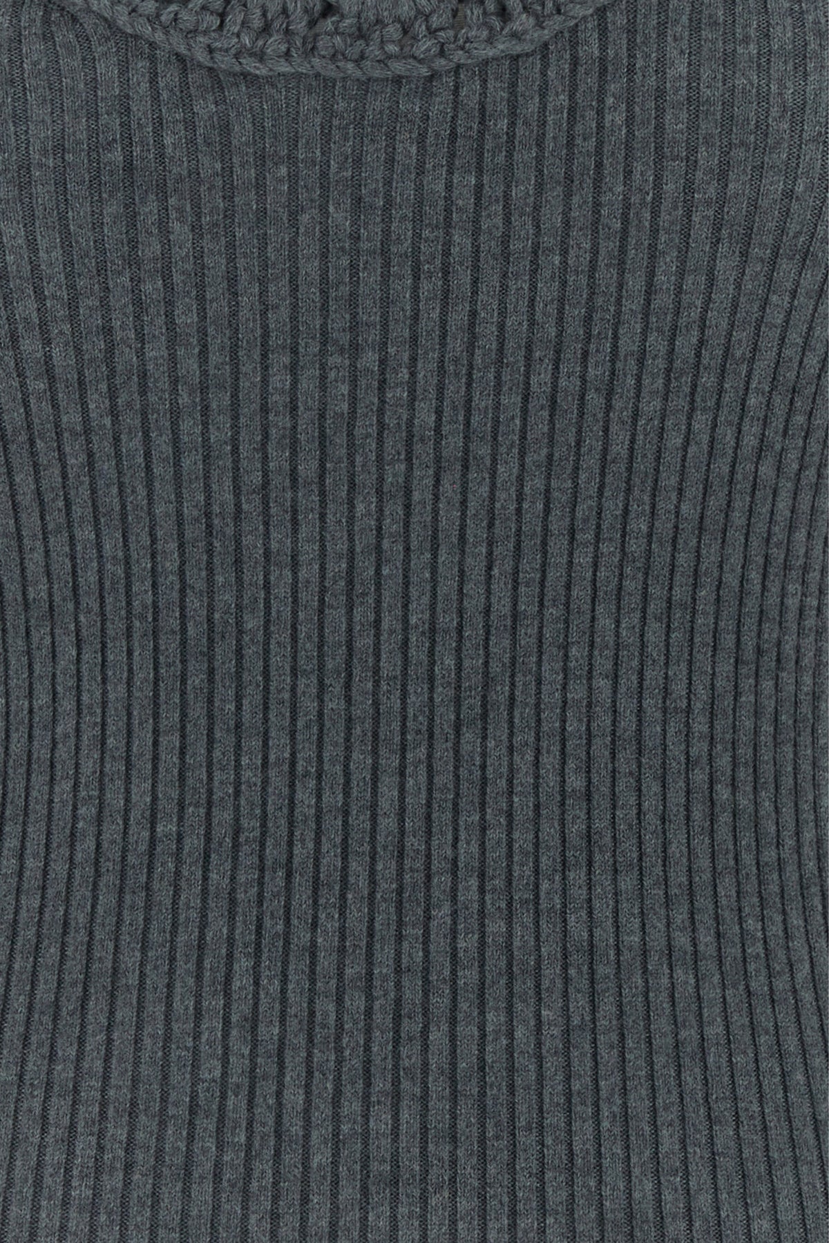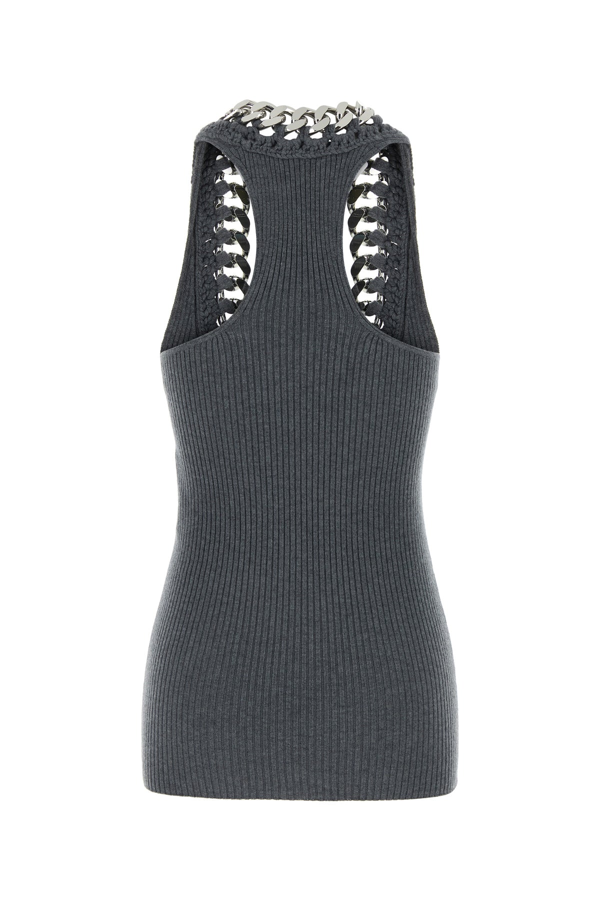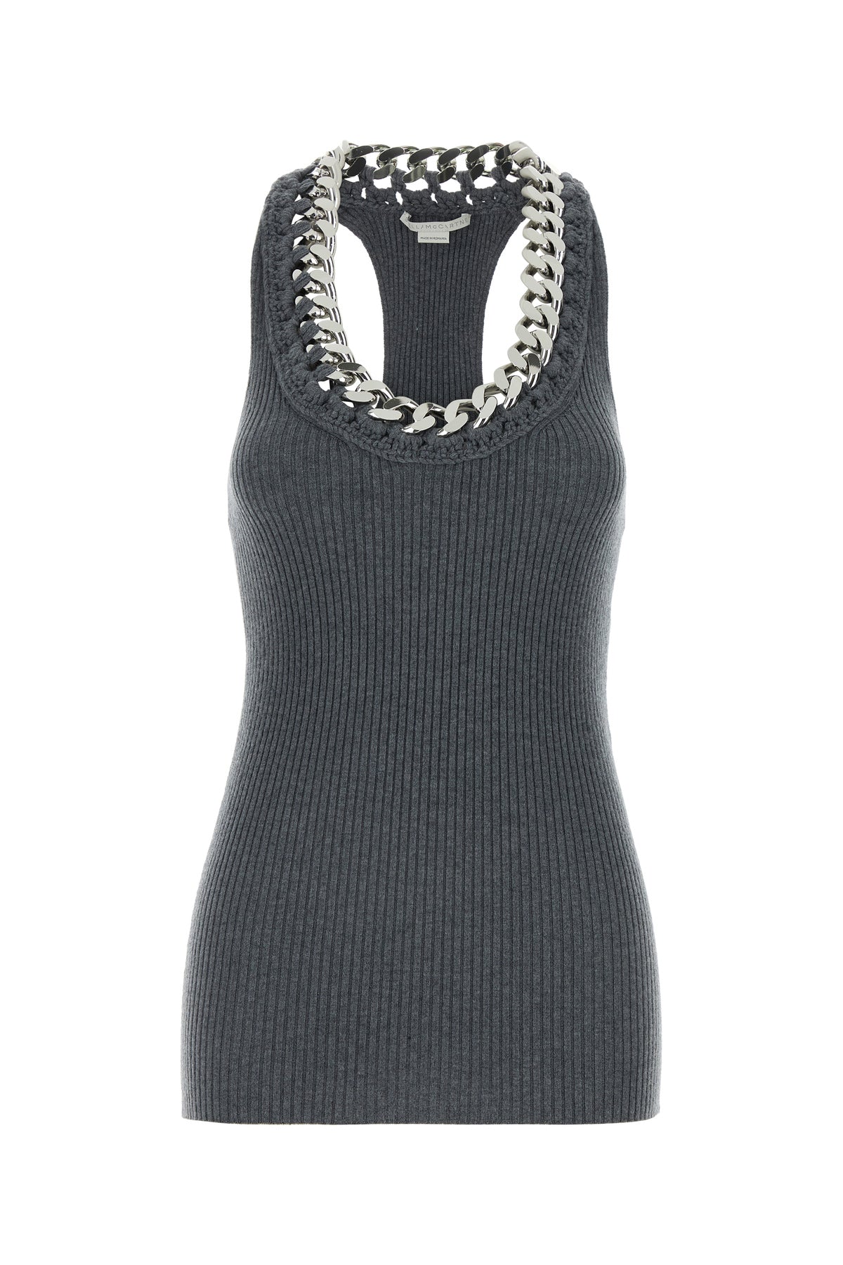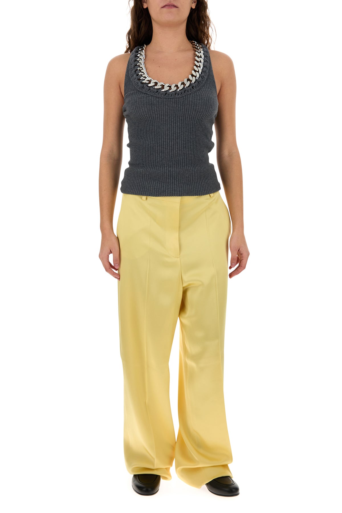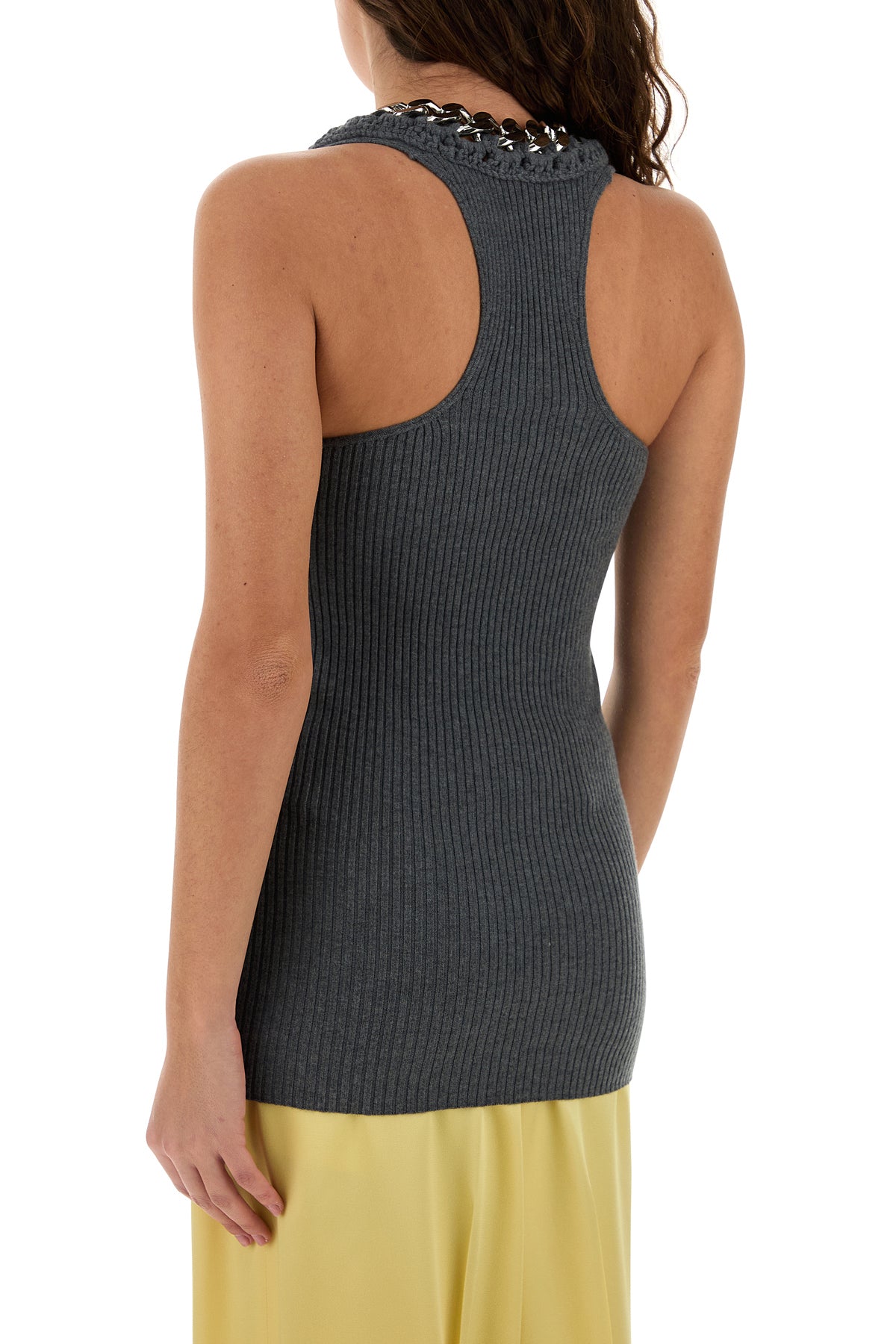 Top realized in ribbed stretch wool blend enriched by metal Falabella chain on the trimming.