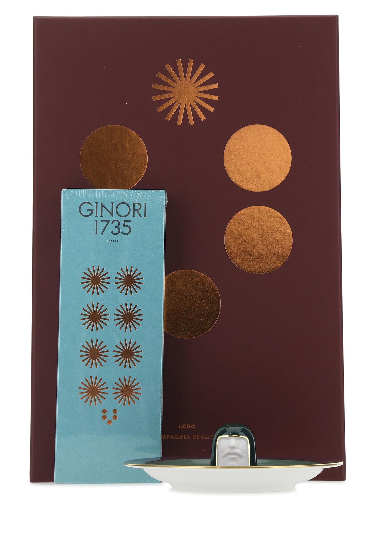 Refillable incense burner realized in porcelain with a set of 80 Purple Hill incense sticks.