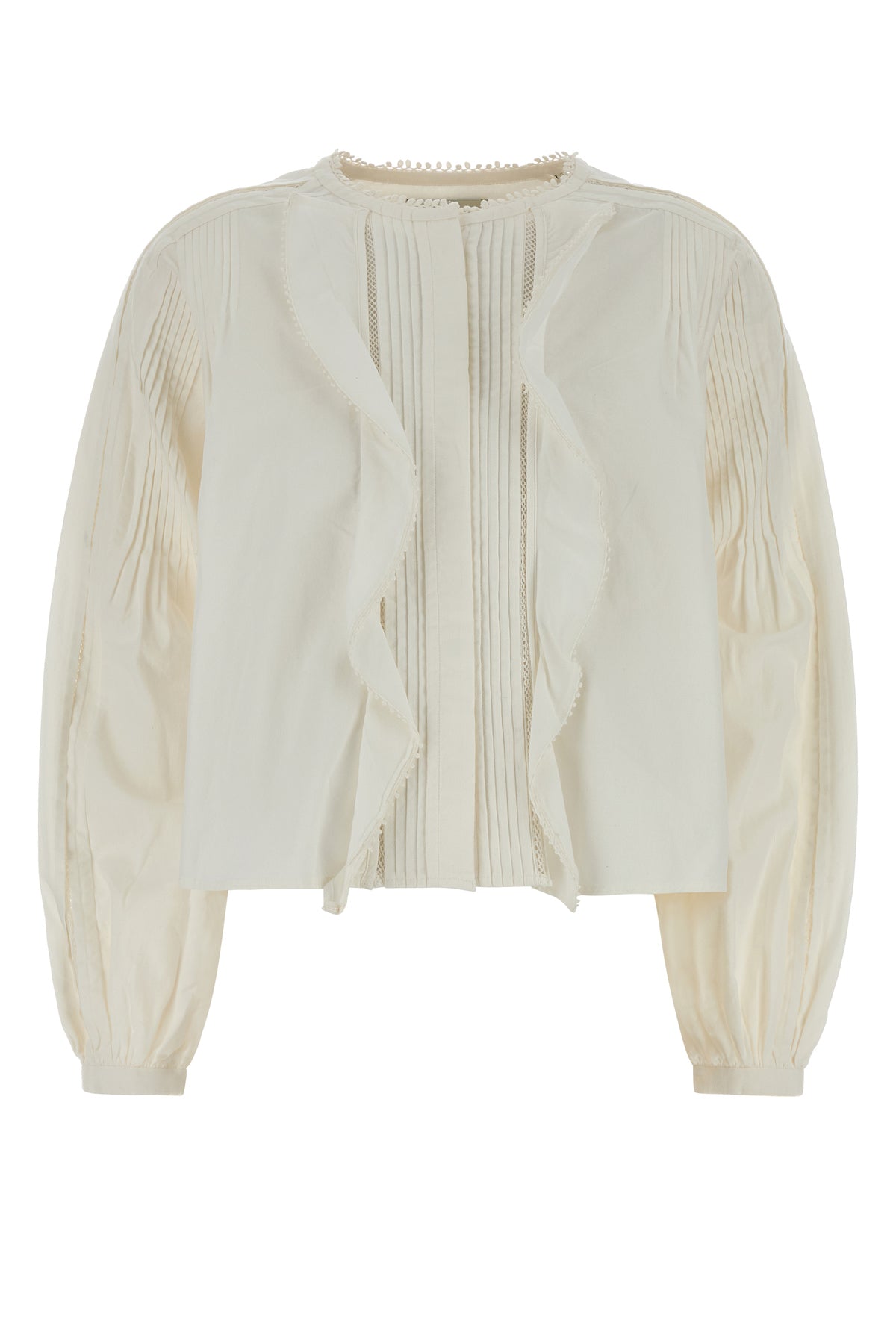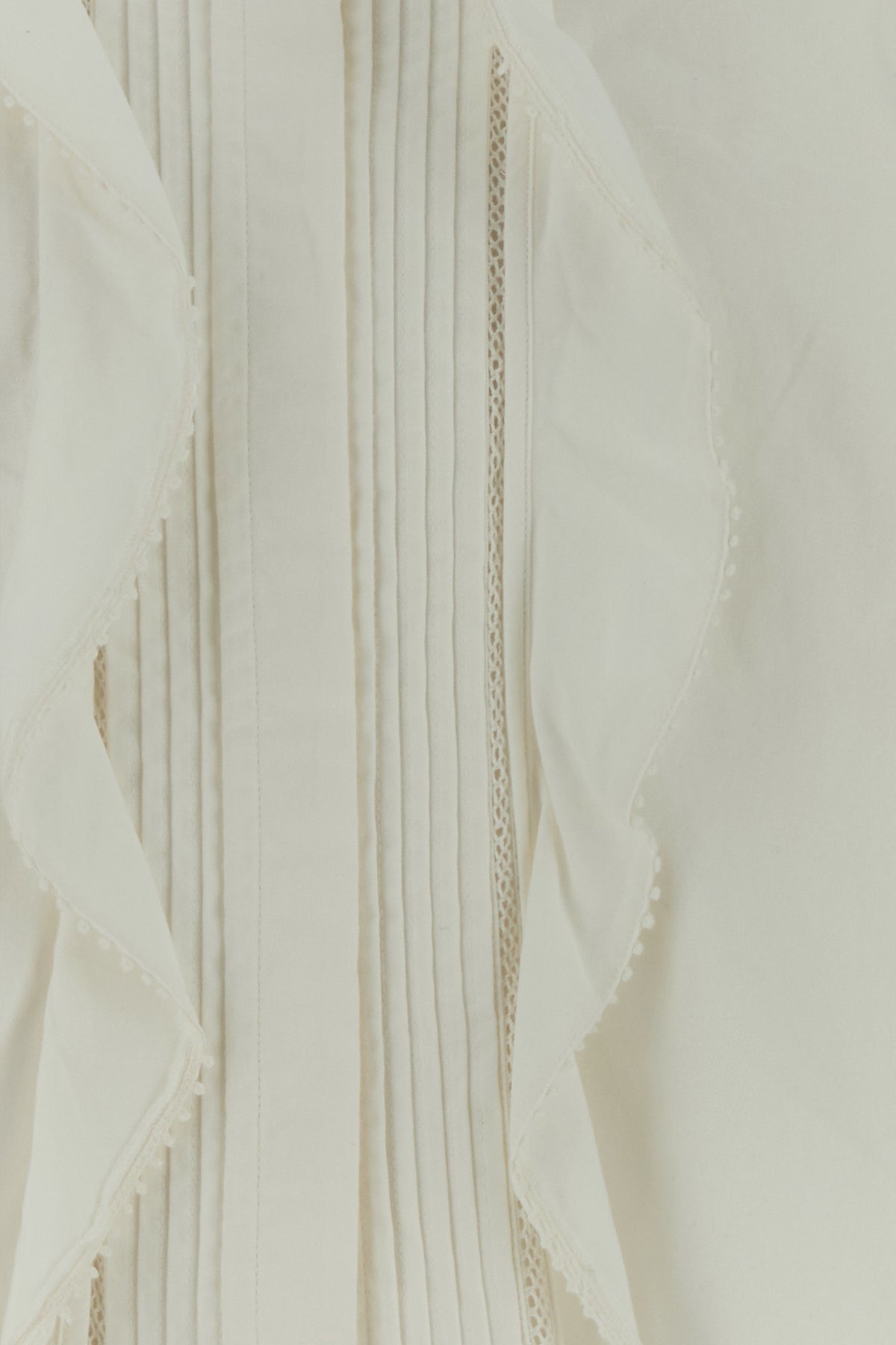 Blouse realized in pure cotton enriched by ruffles at the front.