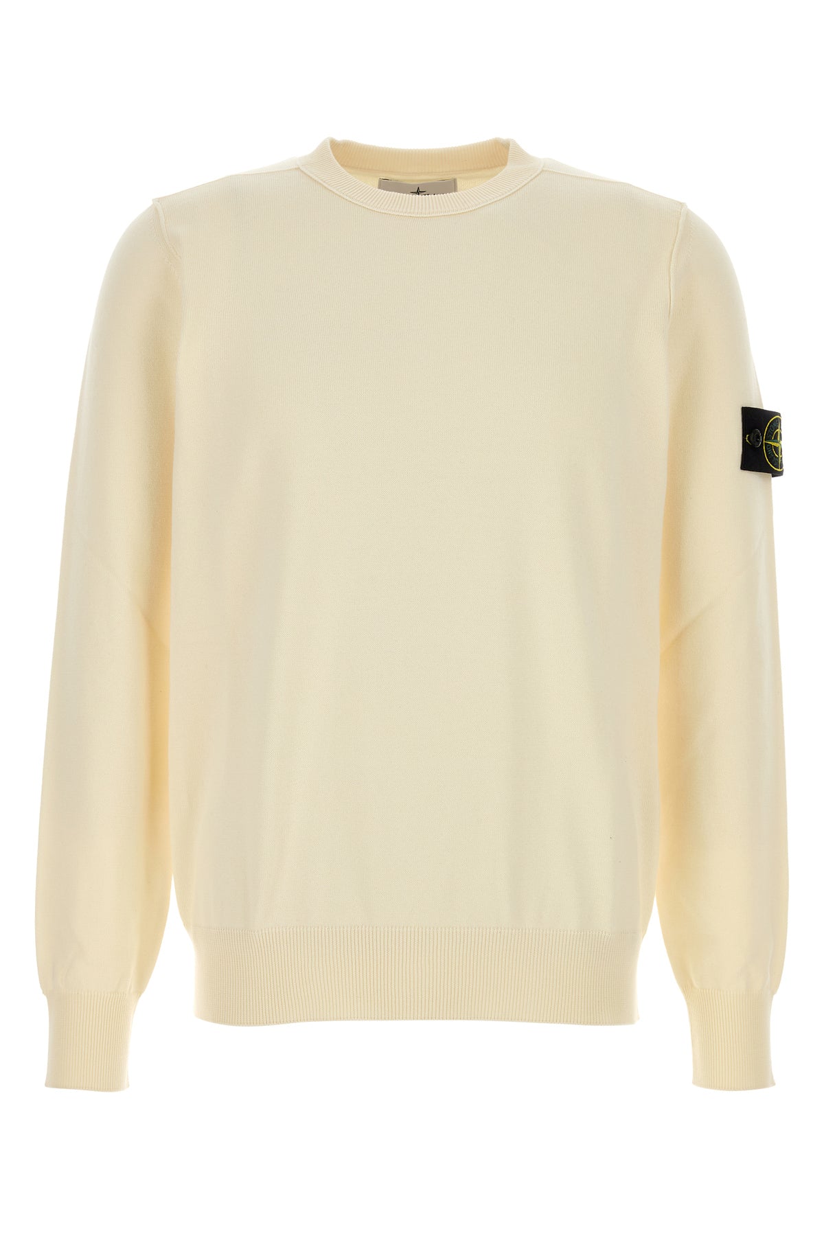 Sweater realized in pure cotton enriched by detachable logoed label on the sleeve.