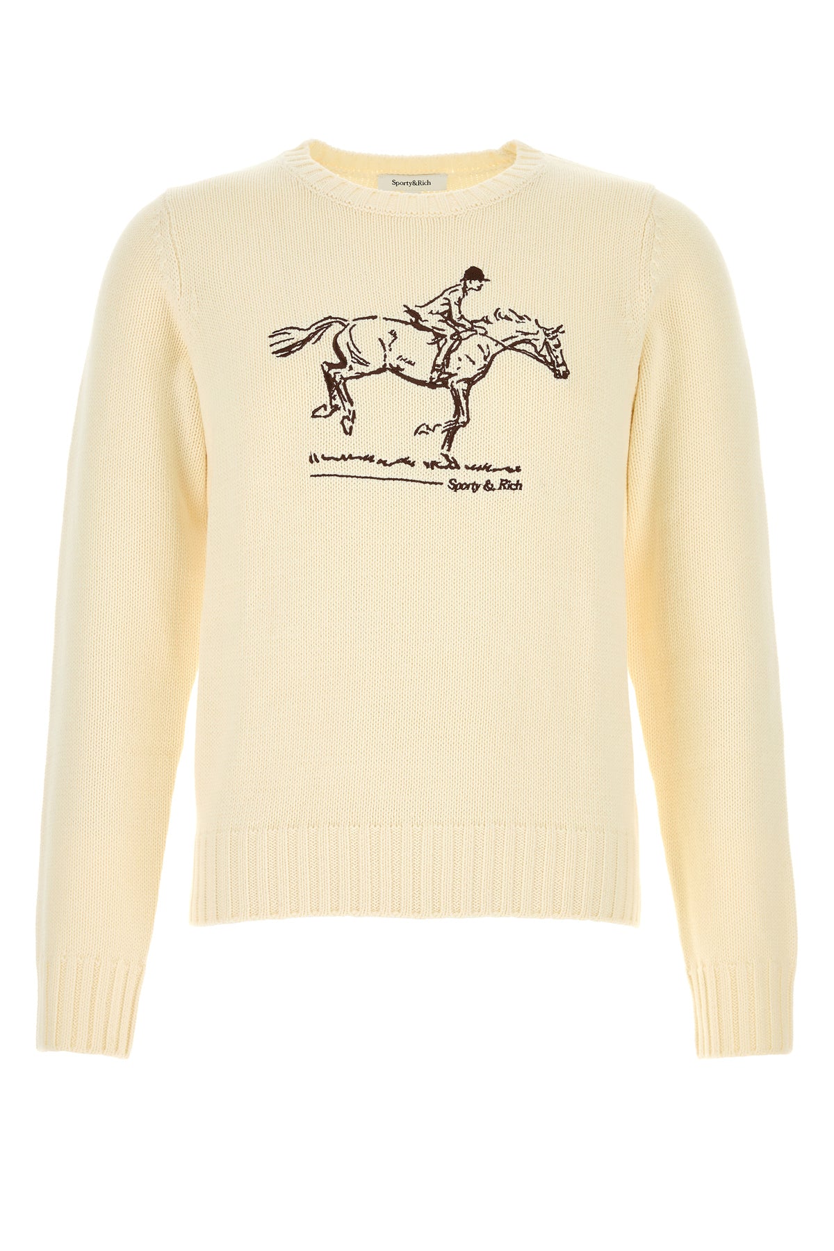 Sweater realized in pure cotton characterized by Horse embroidery at the front.