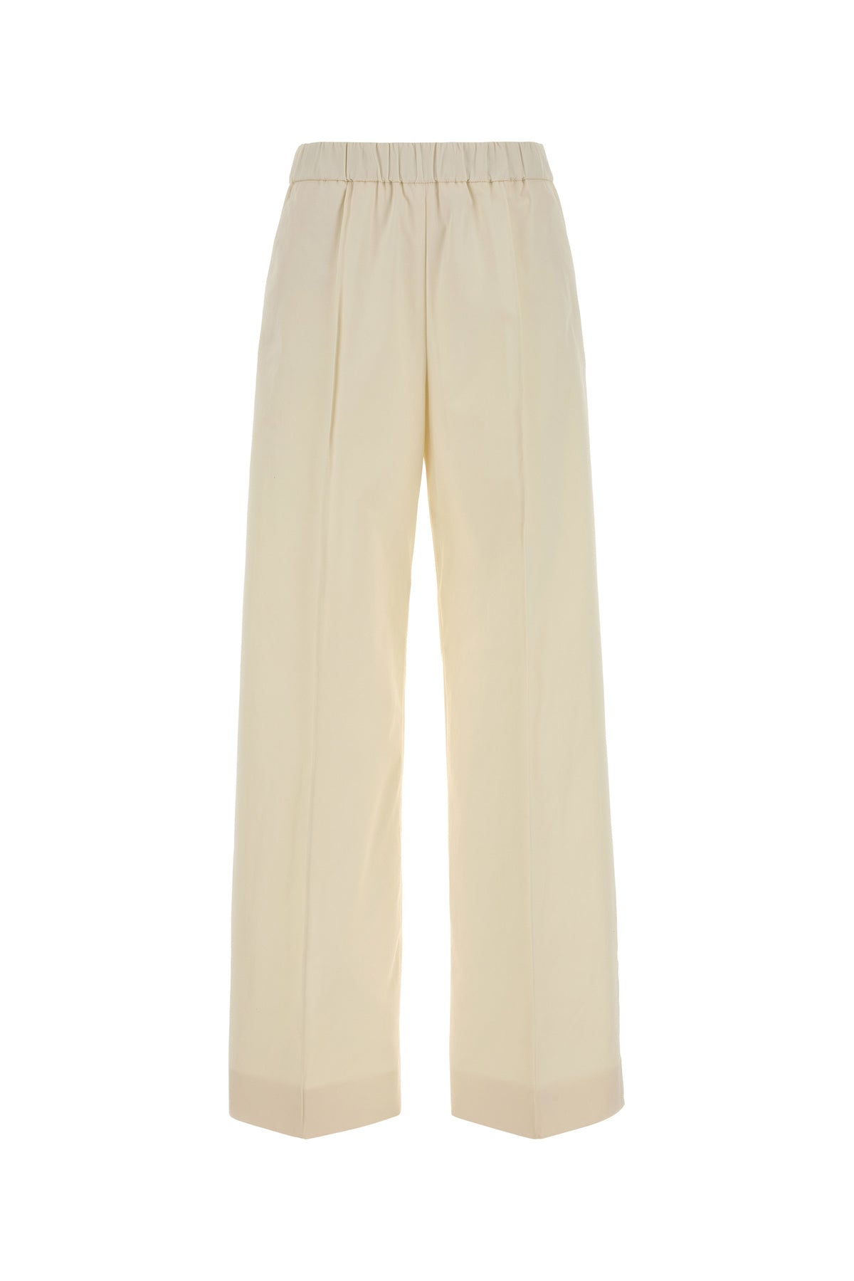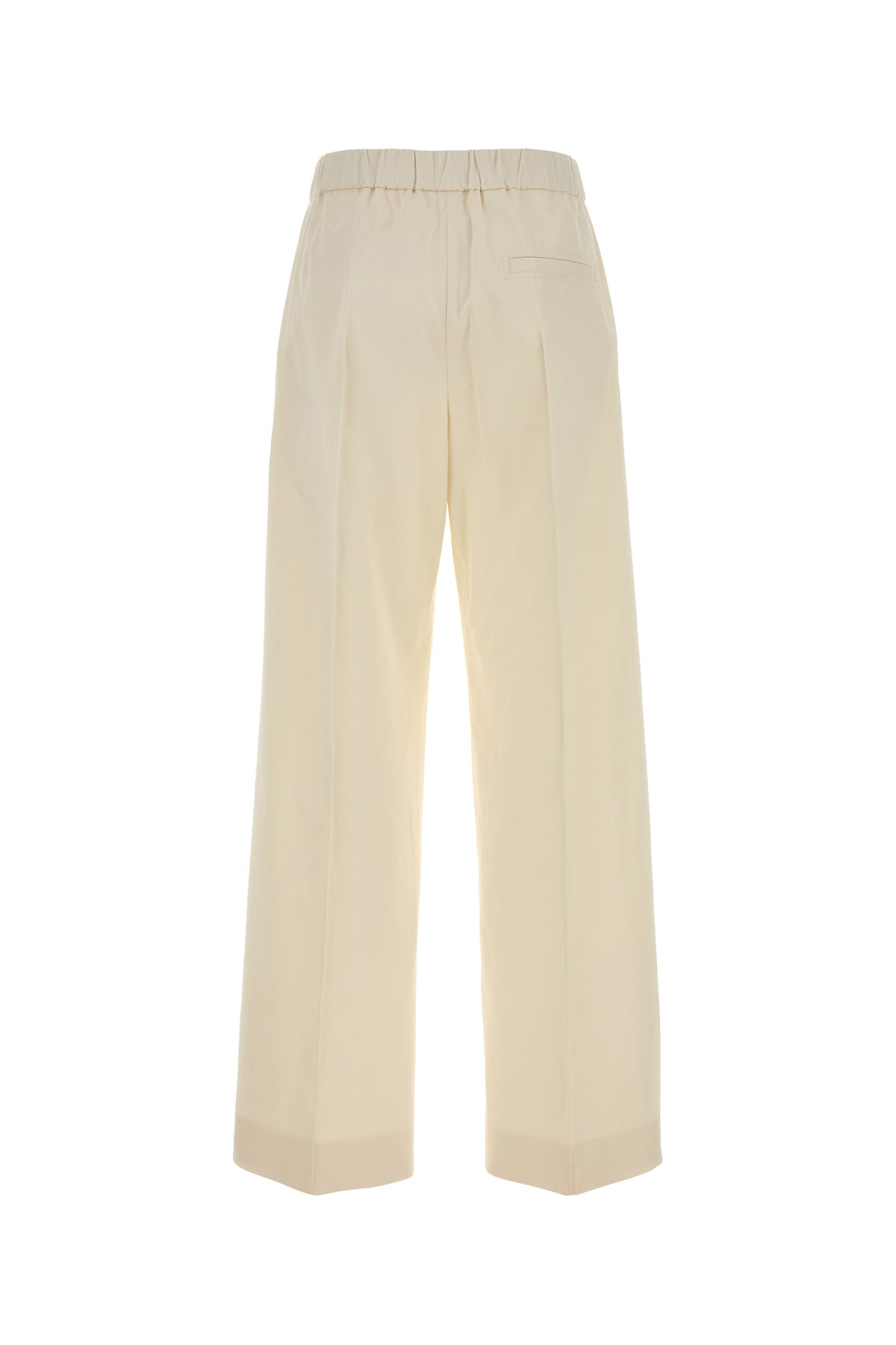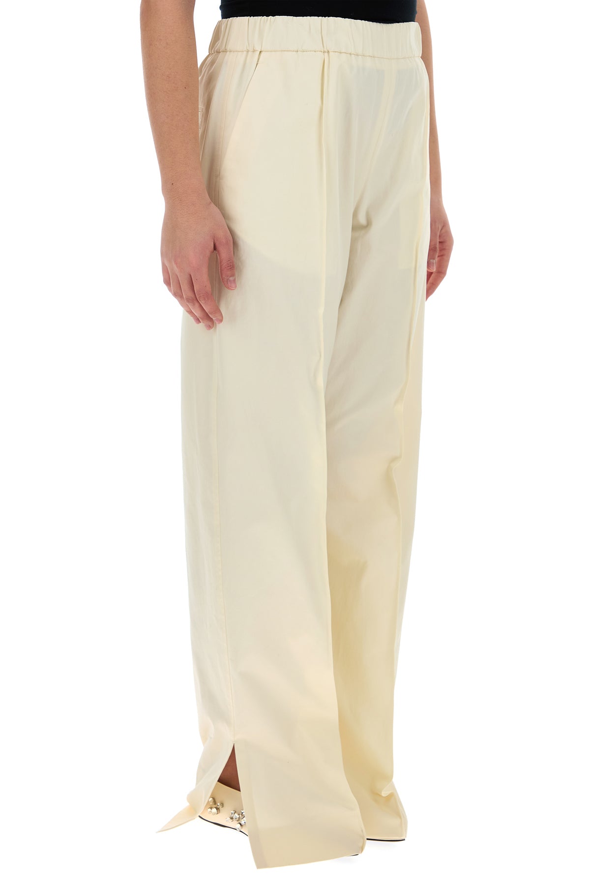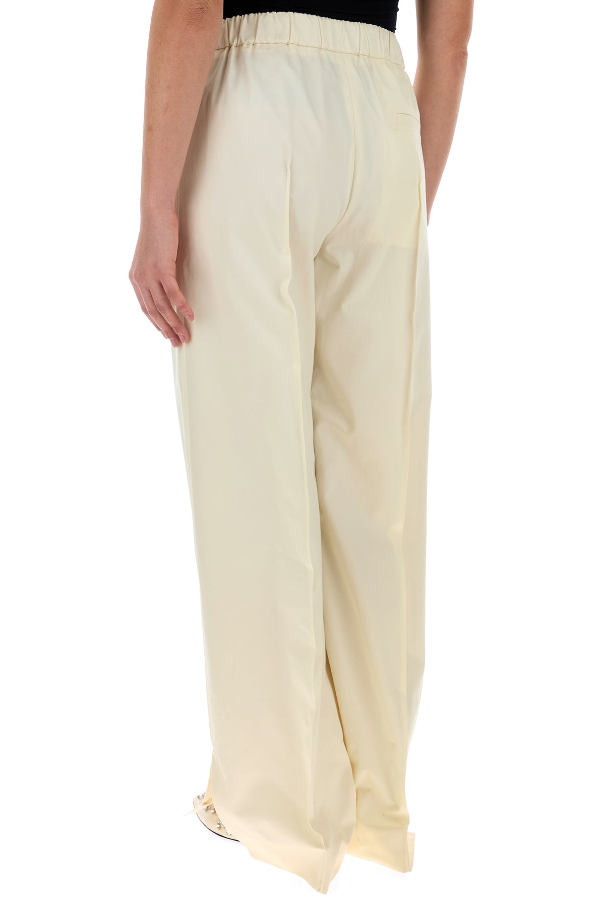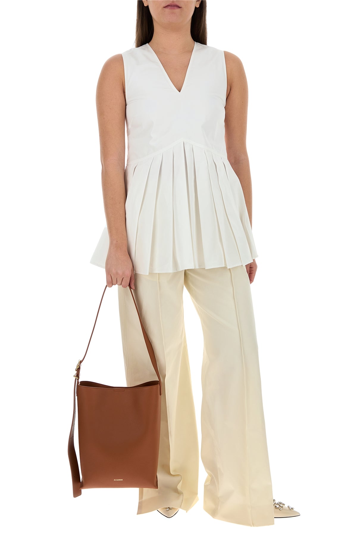 Wide-leg pant realized in pure cotton characterized by central seamed pleats.