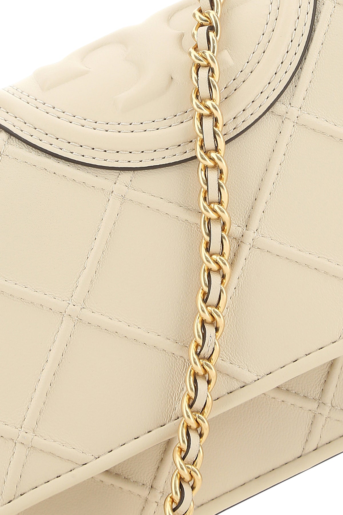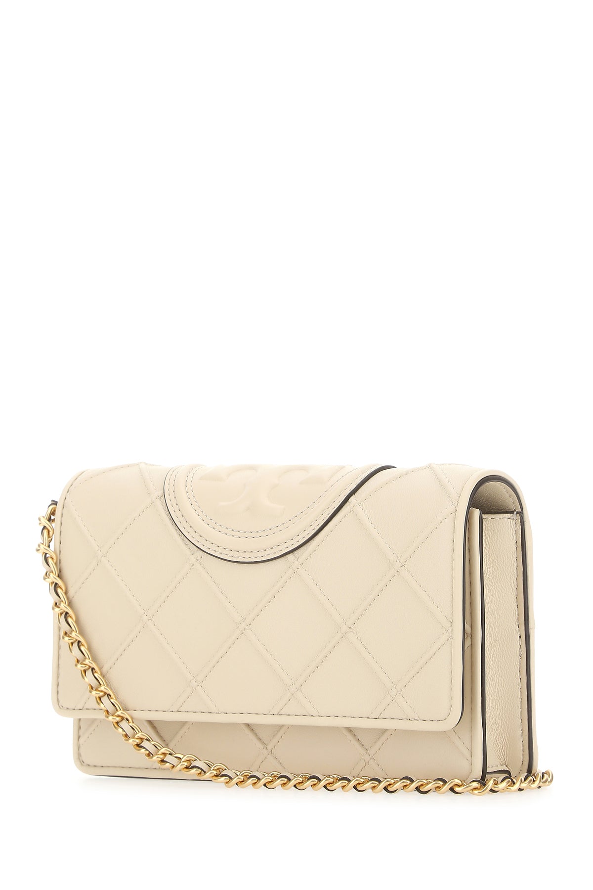 Clutch realized in quilted leather characterized by logo in relief on the flap.