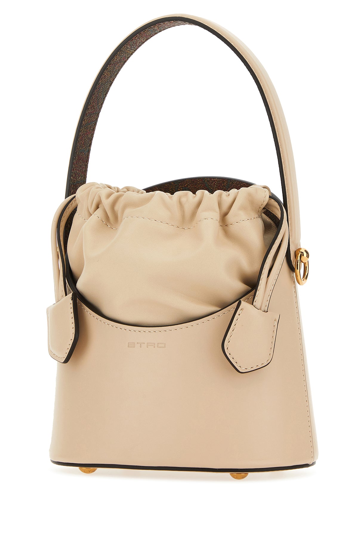 Bucket bag realized in calf leather characterized by embossed logo at the front.