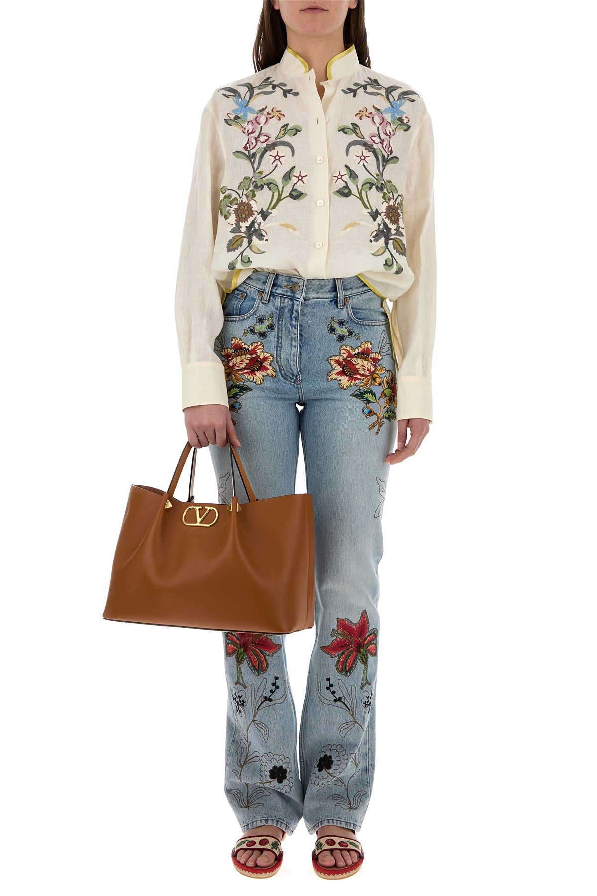 Shirt realized in pure linen characterized by floral embroidery at the front.