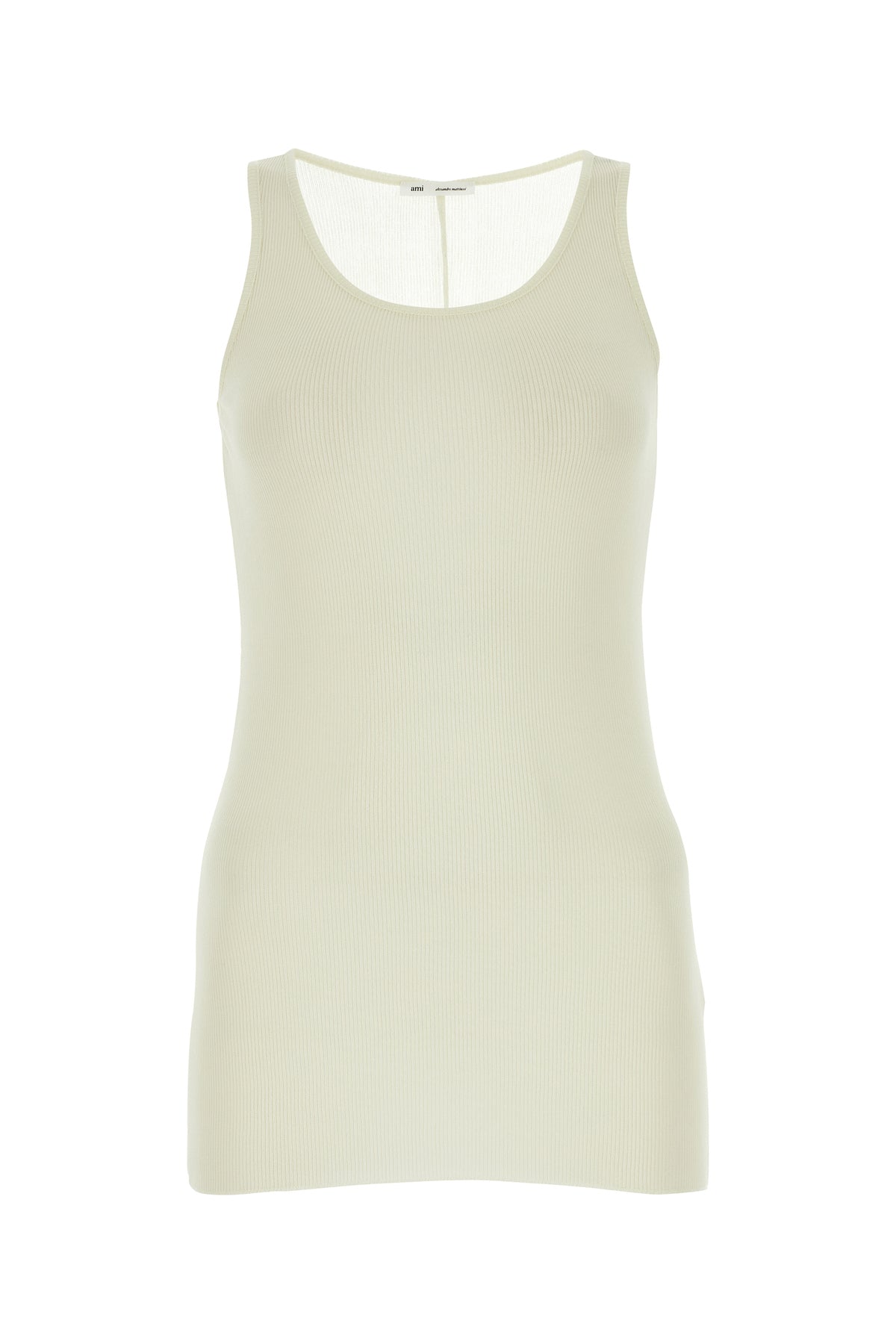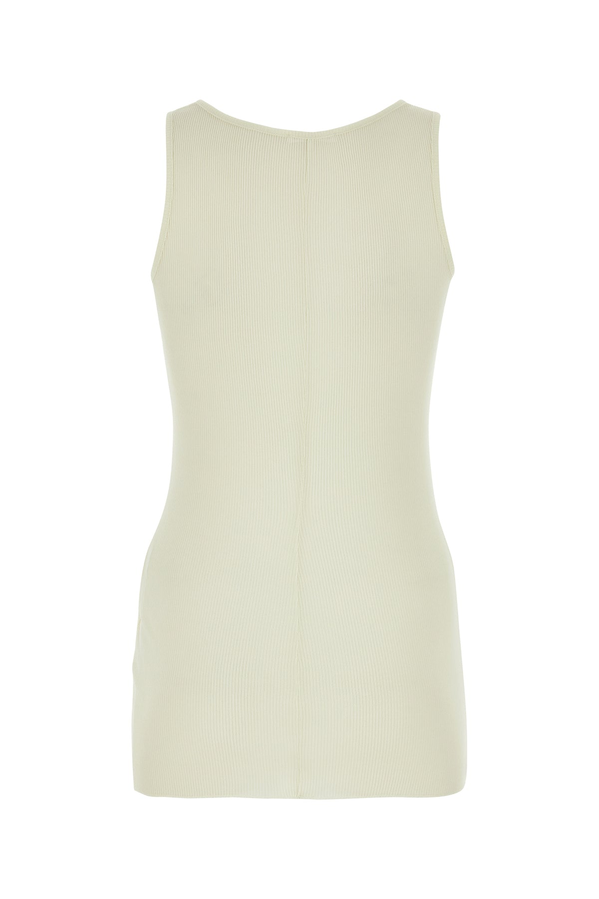 Tank top realized in ribbed viscose blend characterized by round neckline.