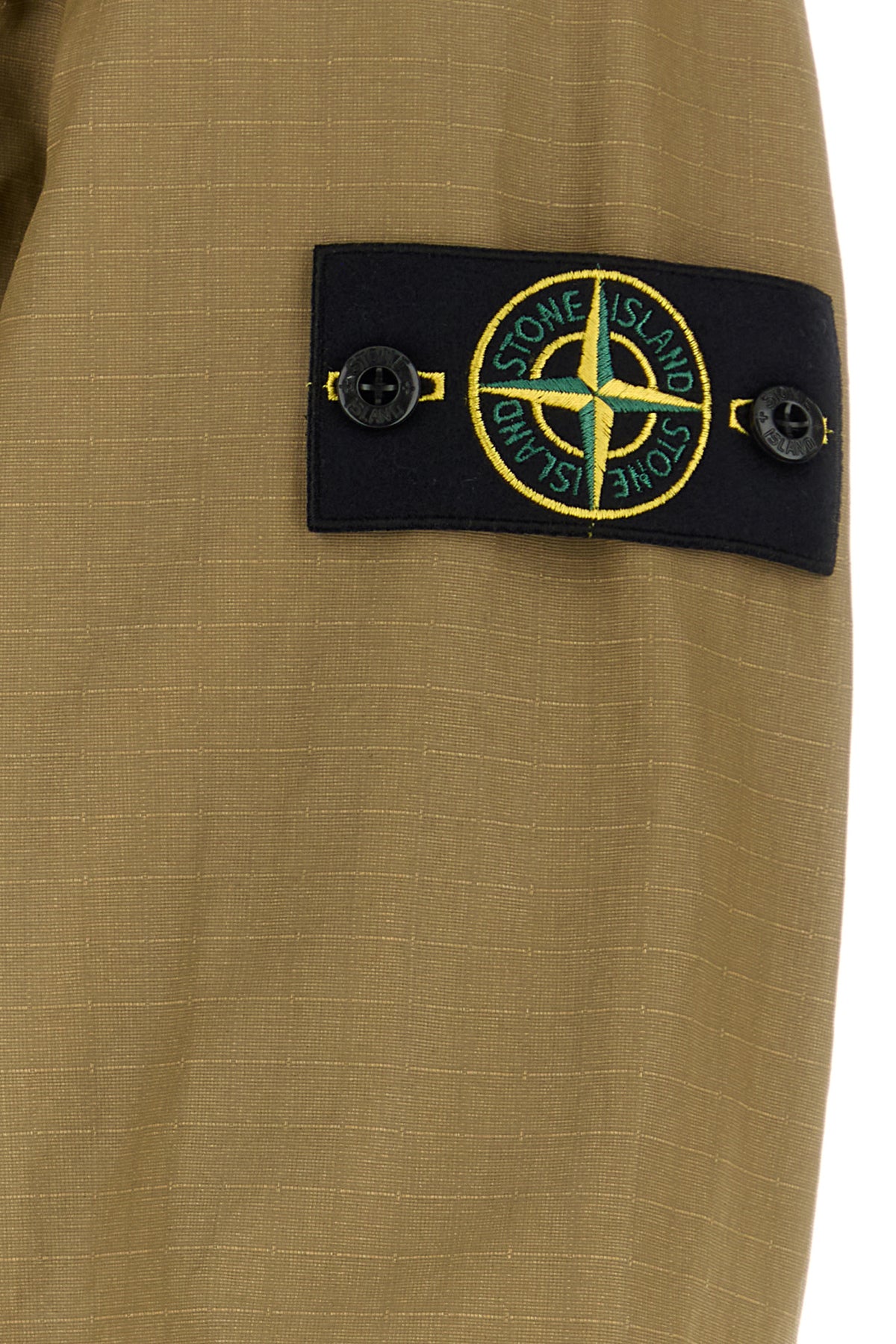 Jacket realized in coated pure cotton enriched by detachable logoed patch on the sleeve.