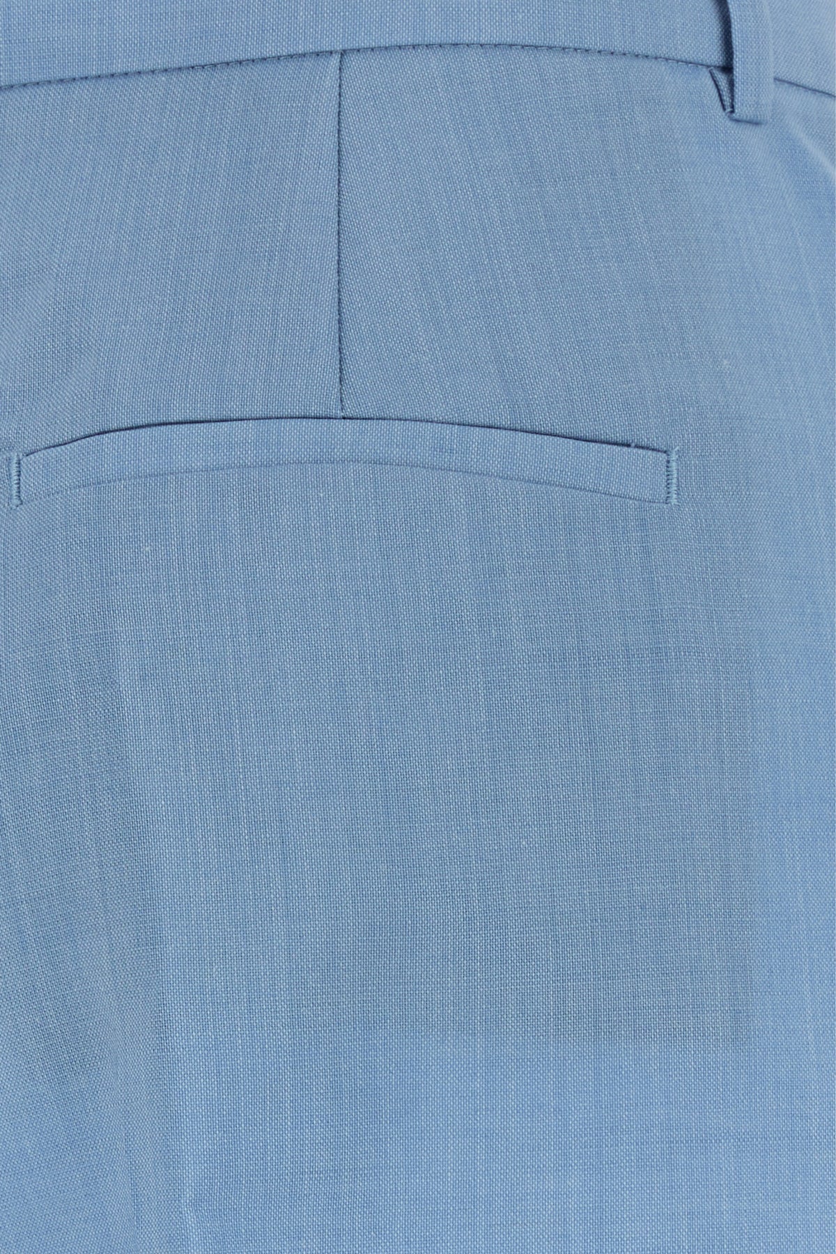Flared leg pant realized in virgin wool blend characterized by central ironed pleats.
