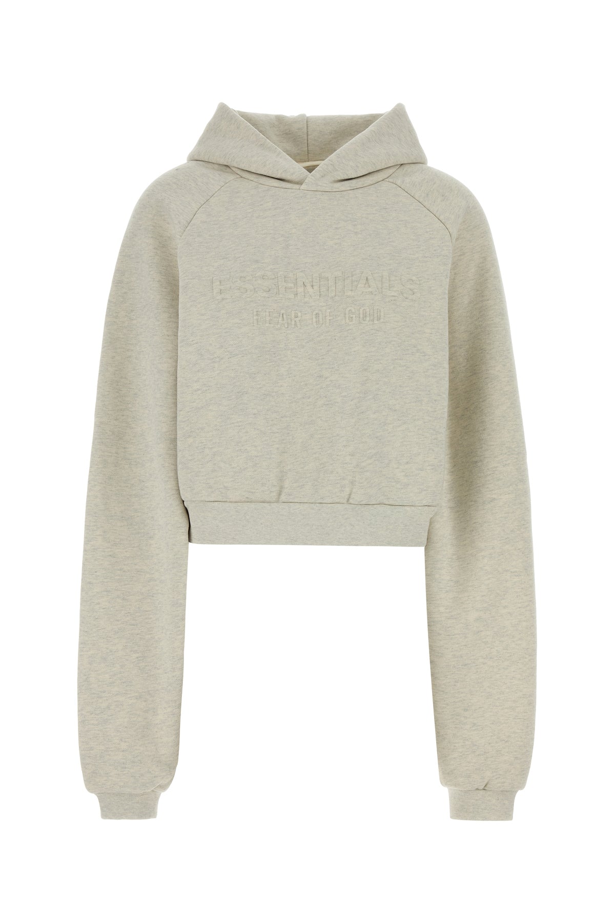 Cropped-cut oversize sweatshirt realized in cotton blend characterized by logo in relief at the front enriched by logoed label on the hood.
