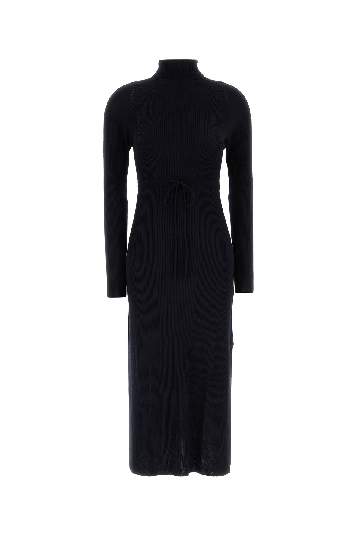 Long-cut sweater dress realized in ribbed pure virgin wool.