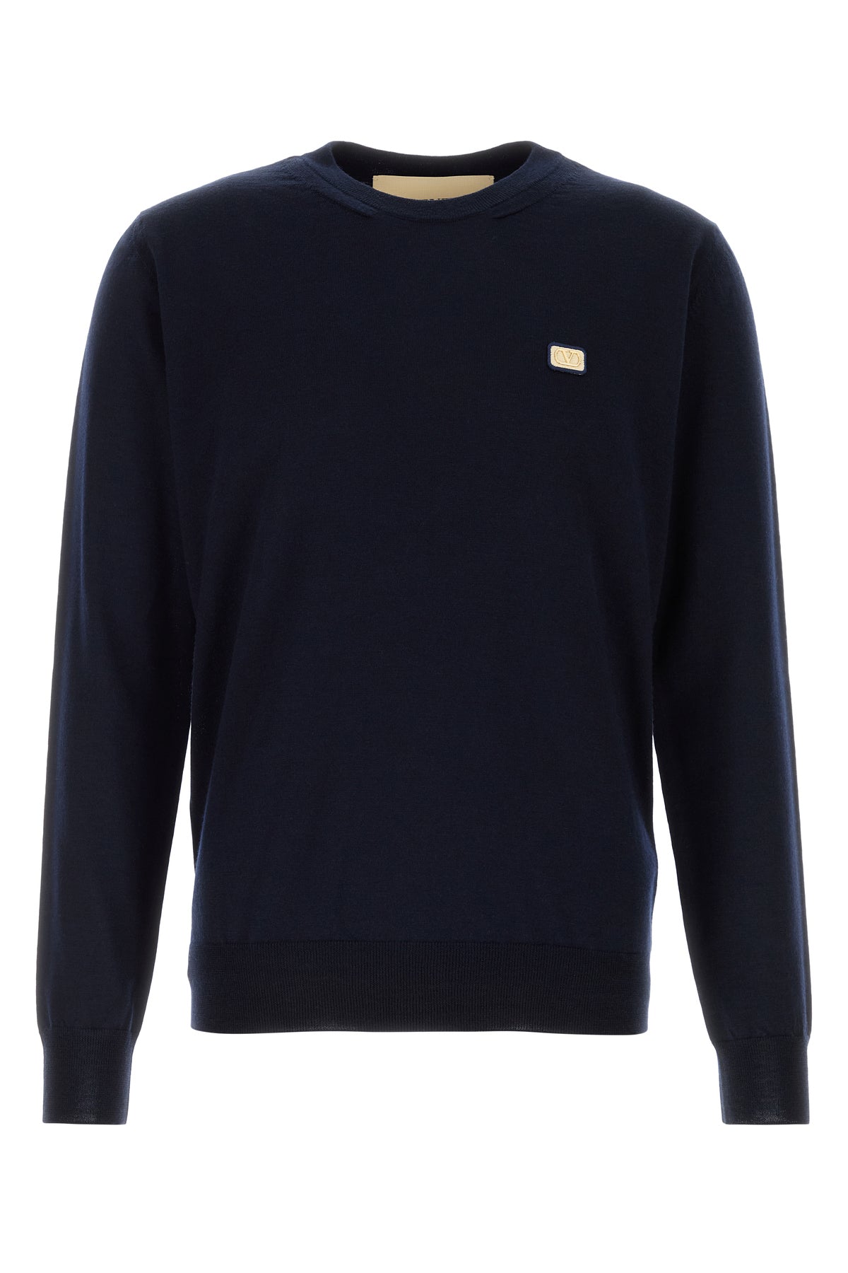 Sweater realized in pure virgin wool enriched by VLogo Signature metal detail on the chest.