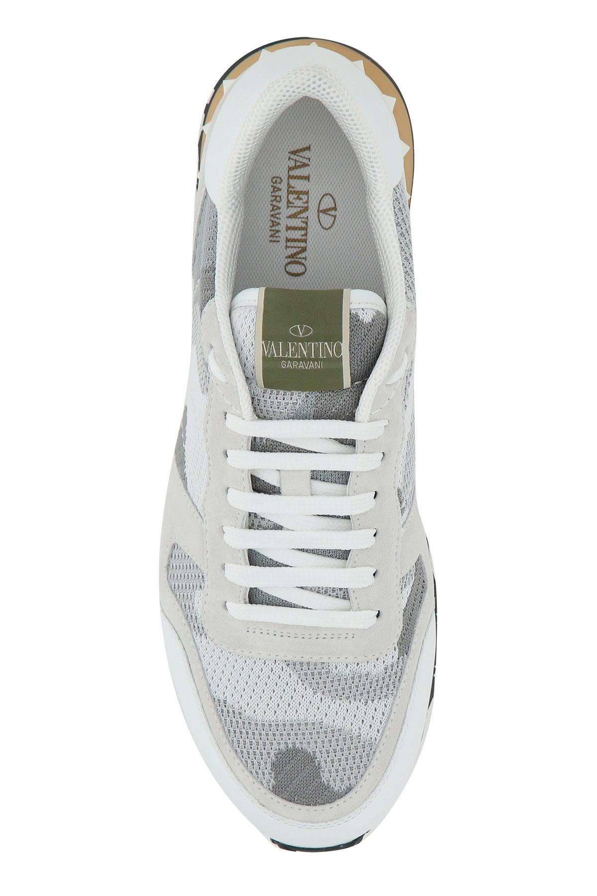 Sneakers realized in fabric, nappa leather and suede characterized by camouflage embroidery enriched by rubber studs at the back.