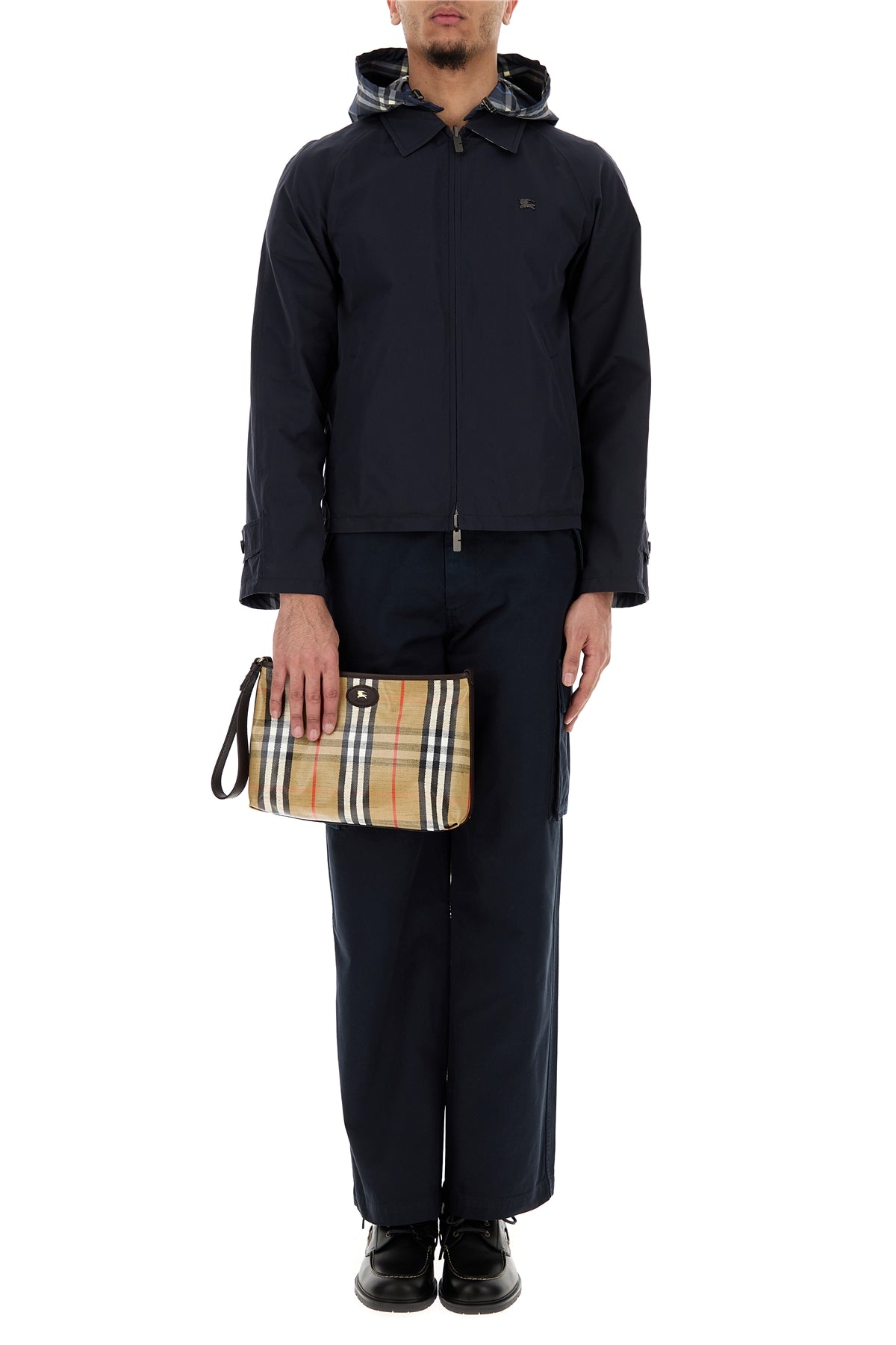- Concealed zip and single visible button closure