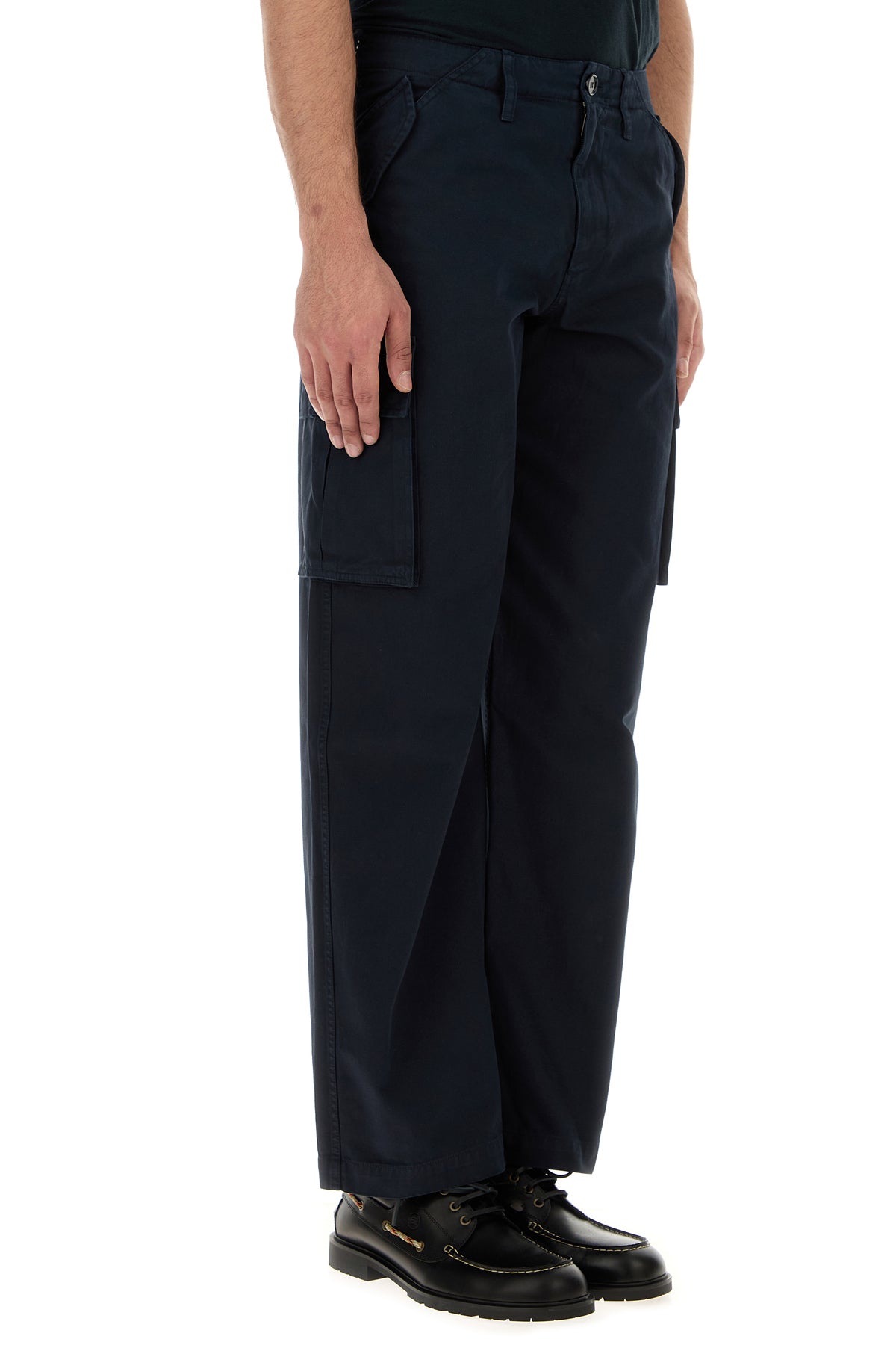 Cargo pant realized in pure cotton enriched by adjustable straps at the waist