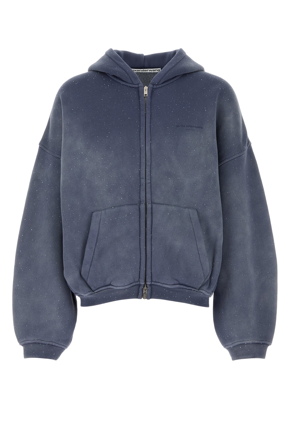 Oversize sweatshirt realized in stonewashed pure cotton entirely covered by rhinestones characterized by tonal embroidered logo on the chest.