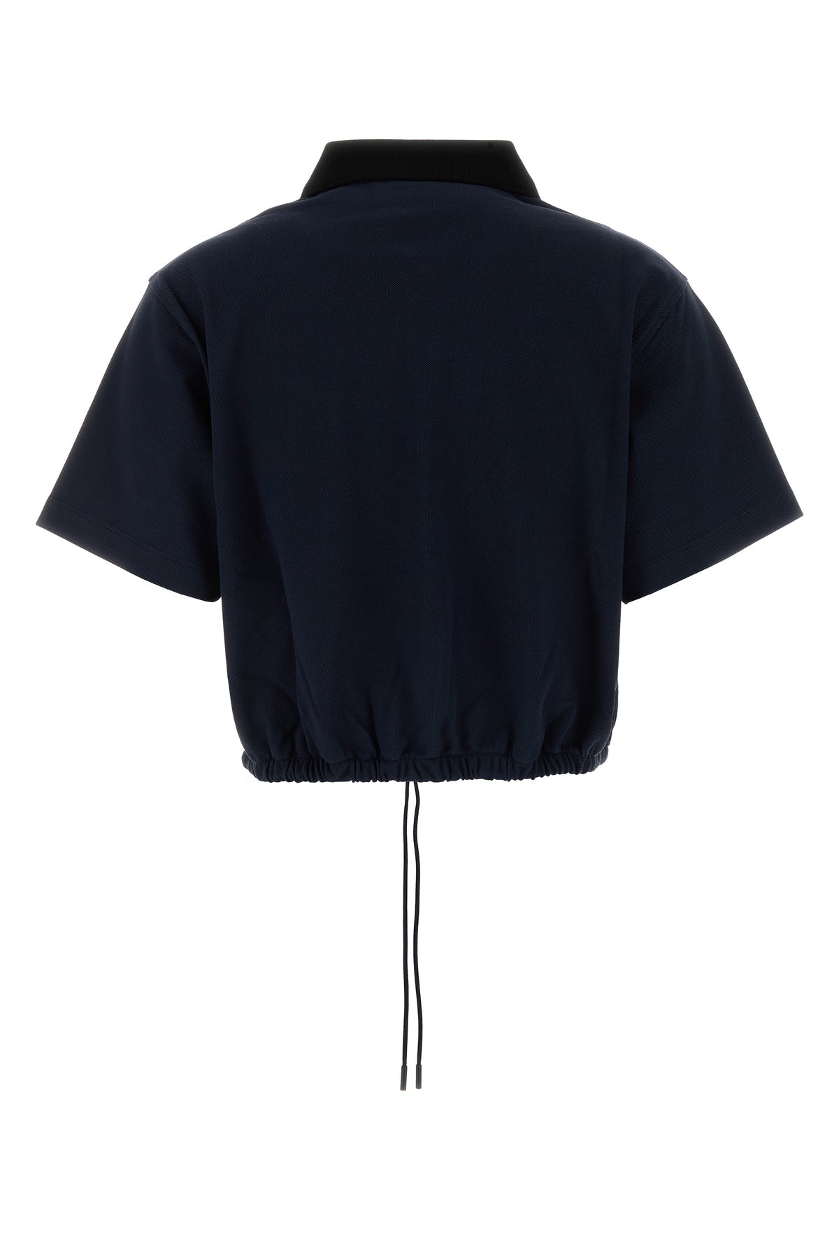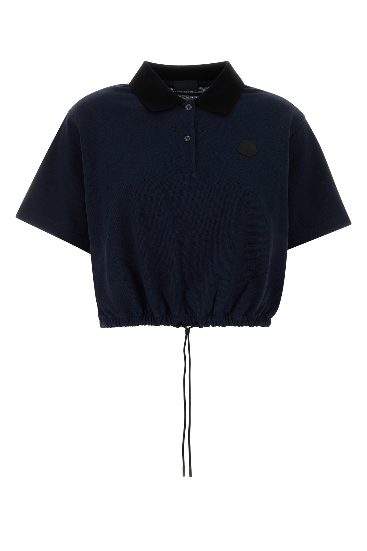 Cropped-cut polo shirt realized in pure cotton piquet enriched by logoed patch on the chest.